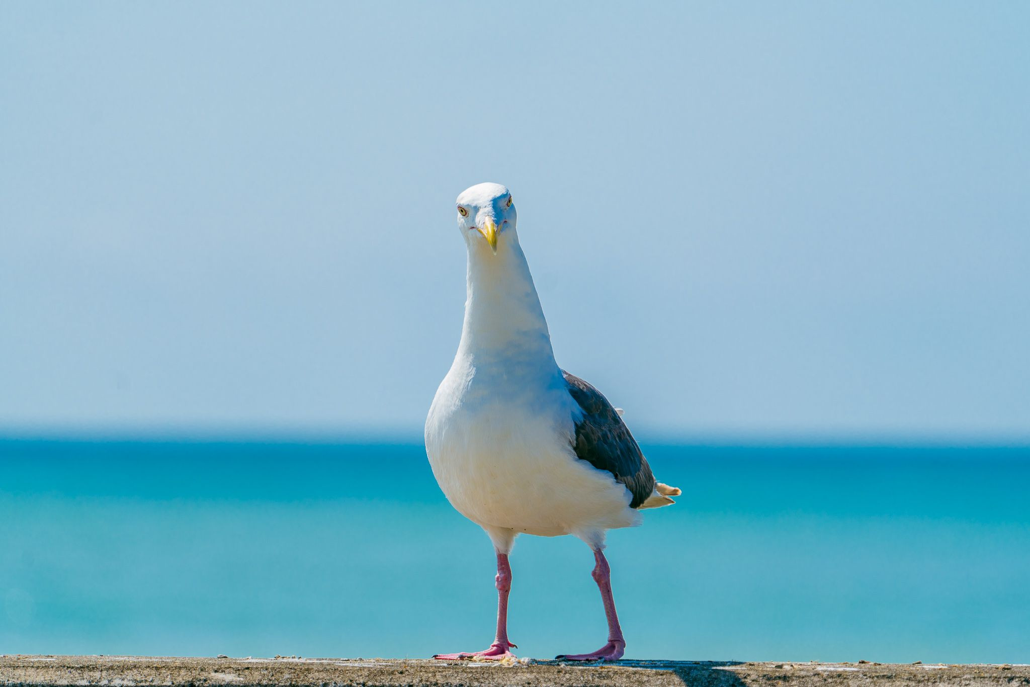 久しぶりに訪れた行きつけの海岸 防波堤に佇んでいるカモメを撮っていると、こちらの存在に気付き向きを変えました。少し傾けた首の角度が何とも言えない愛くるしさを感じさせます。