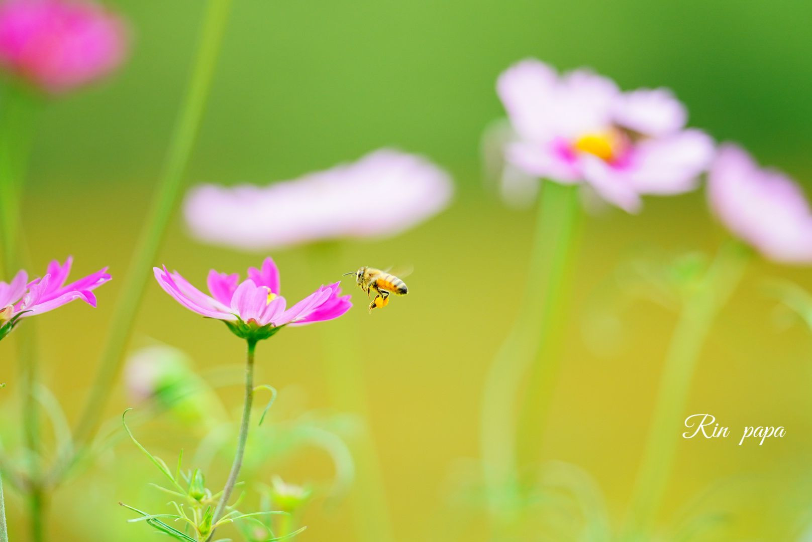 コスモスで蜜集めする虫さん