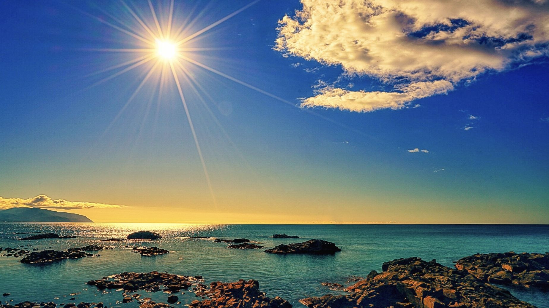 北海道留萌市 夕陽には少し早かったですが太陽が海に沈む時は黄金に輝きます。