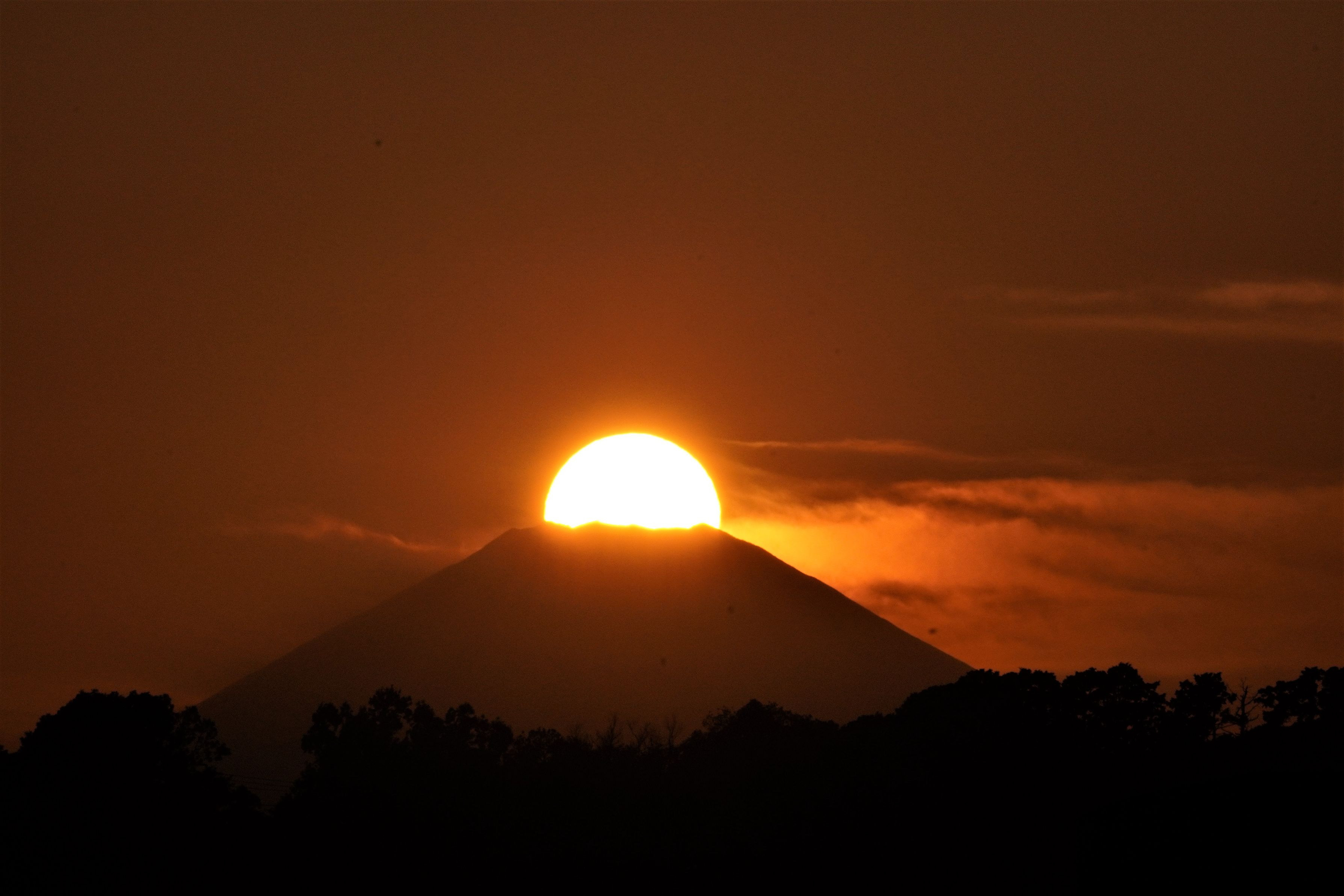 富士山に沈む太陽です。