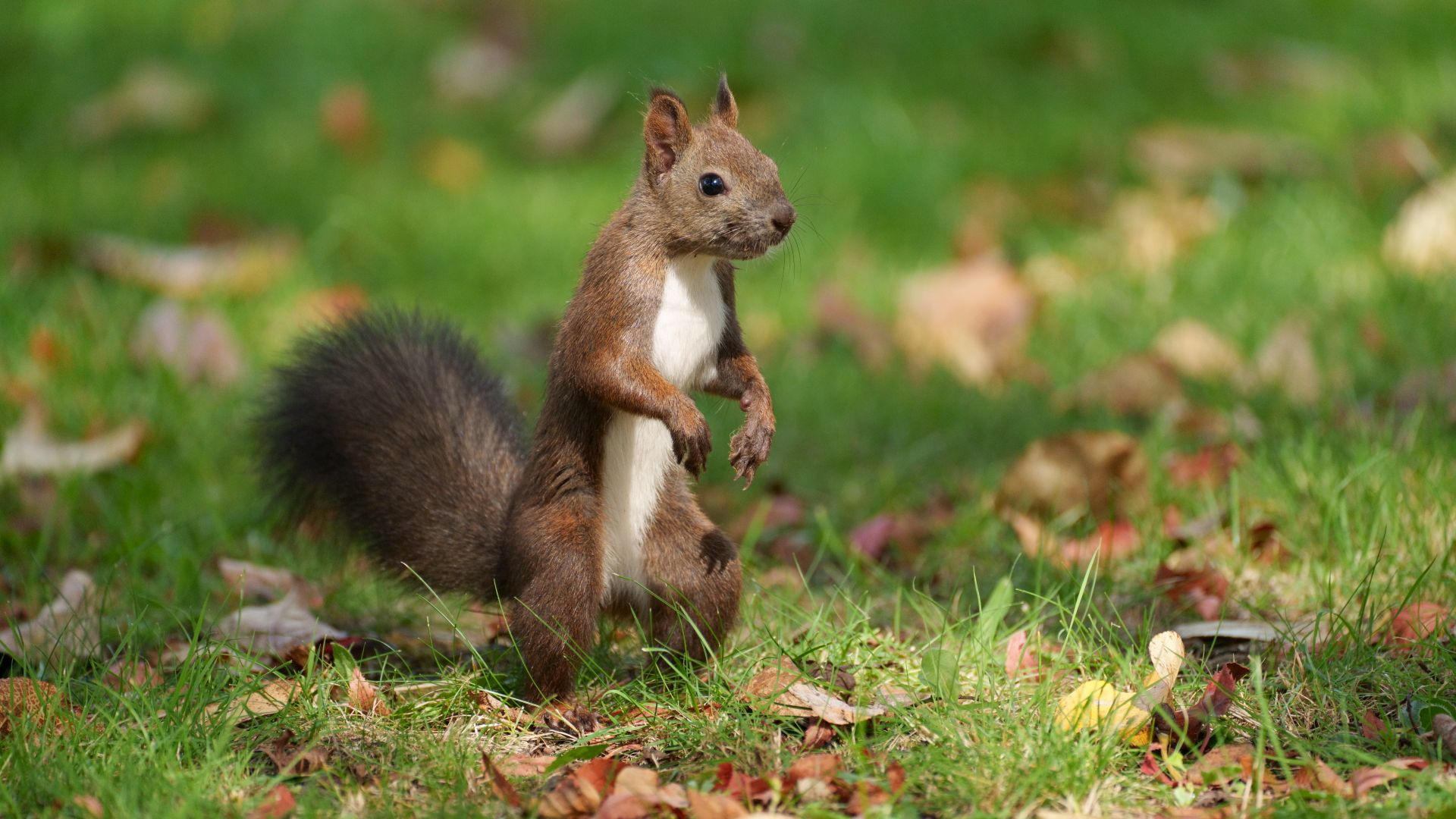 北海道江別市の「泉の沼公園」を走りまわっていたエゾリスです(2021年9月23日撮影)。