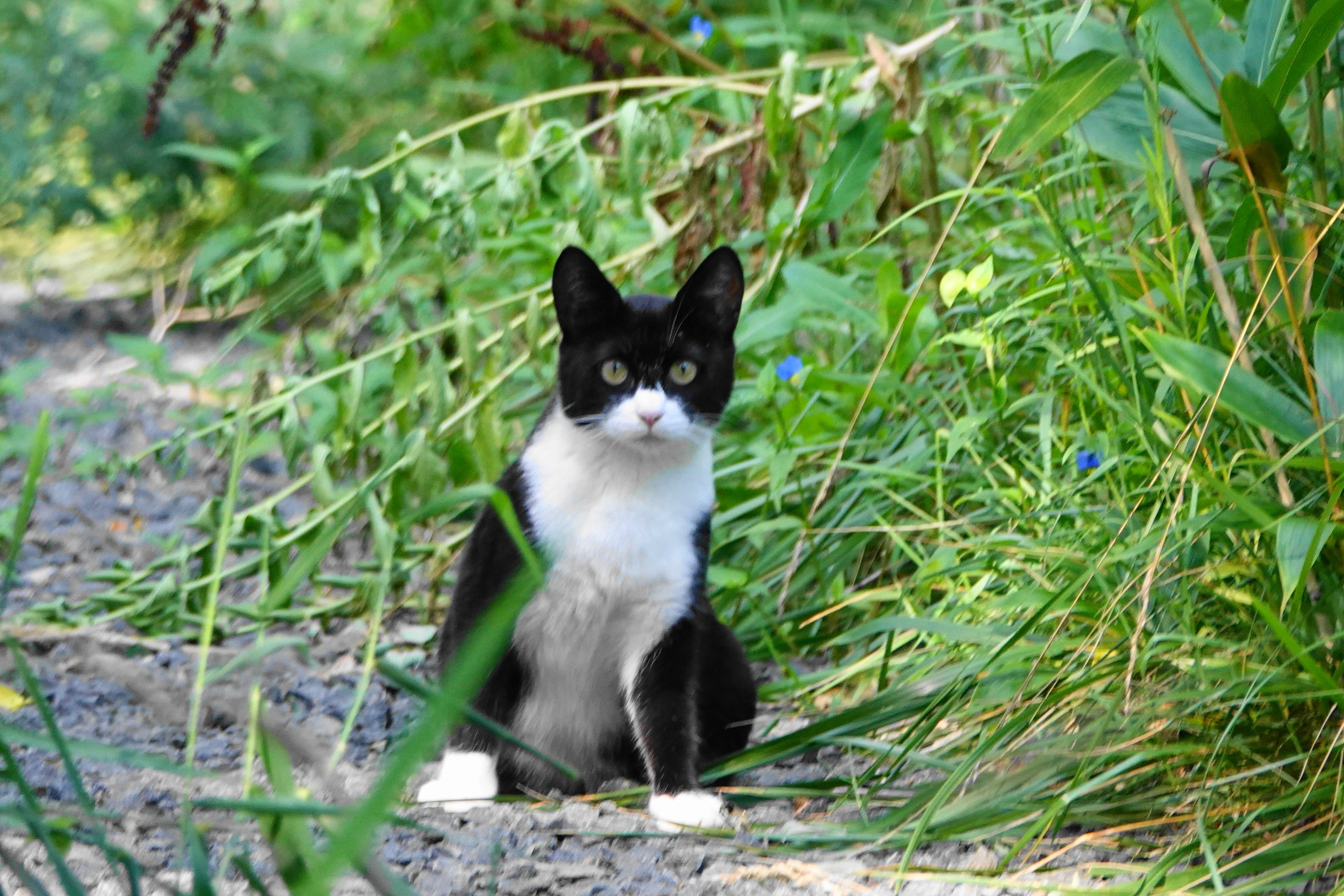 砂利道に猫がいた