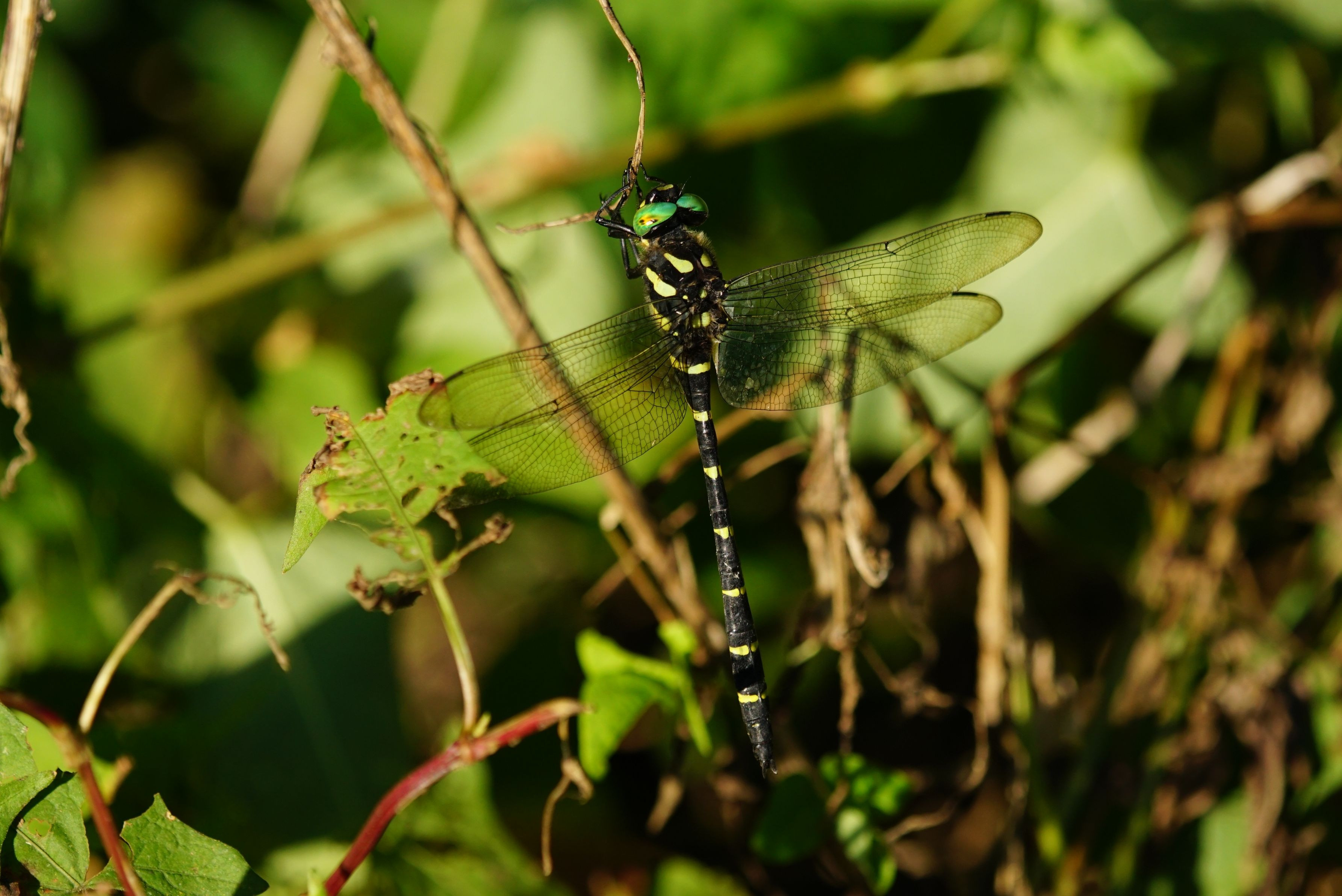 秋を迎えた林道脇の湿地に降臨した帝王・オニヤンマ。 使用レンズはタムロンSPAF180mmF3.5Diマクロです。MF+Fullで撮影。