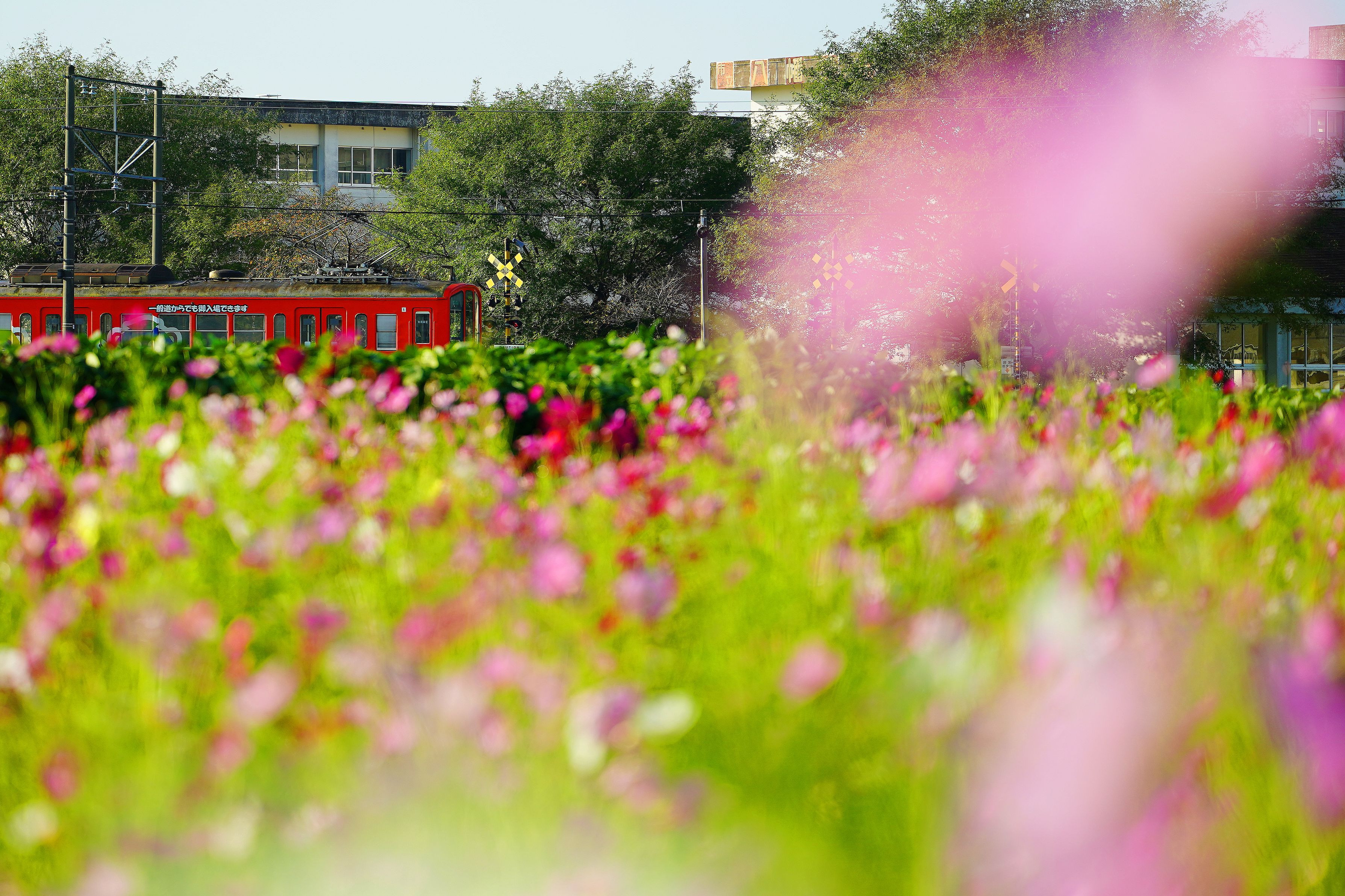 近江鉄道と秋桜です(^^)