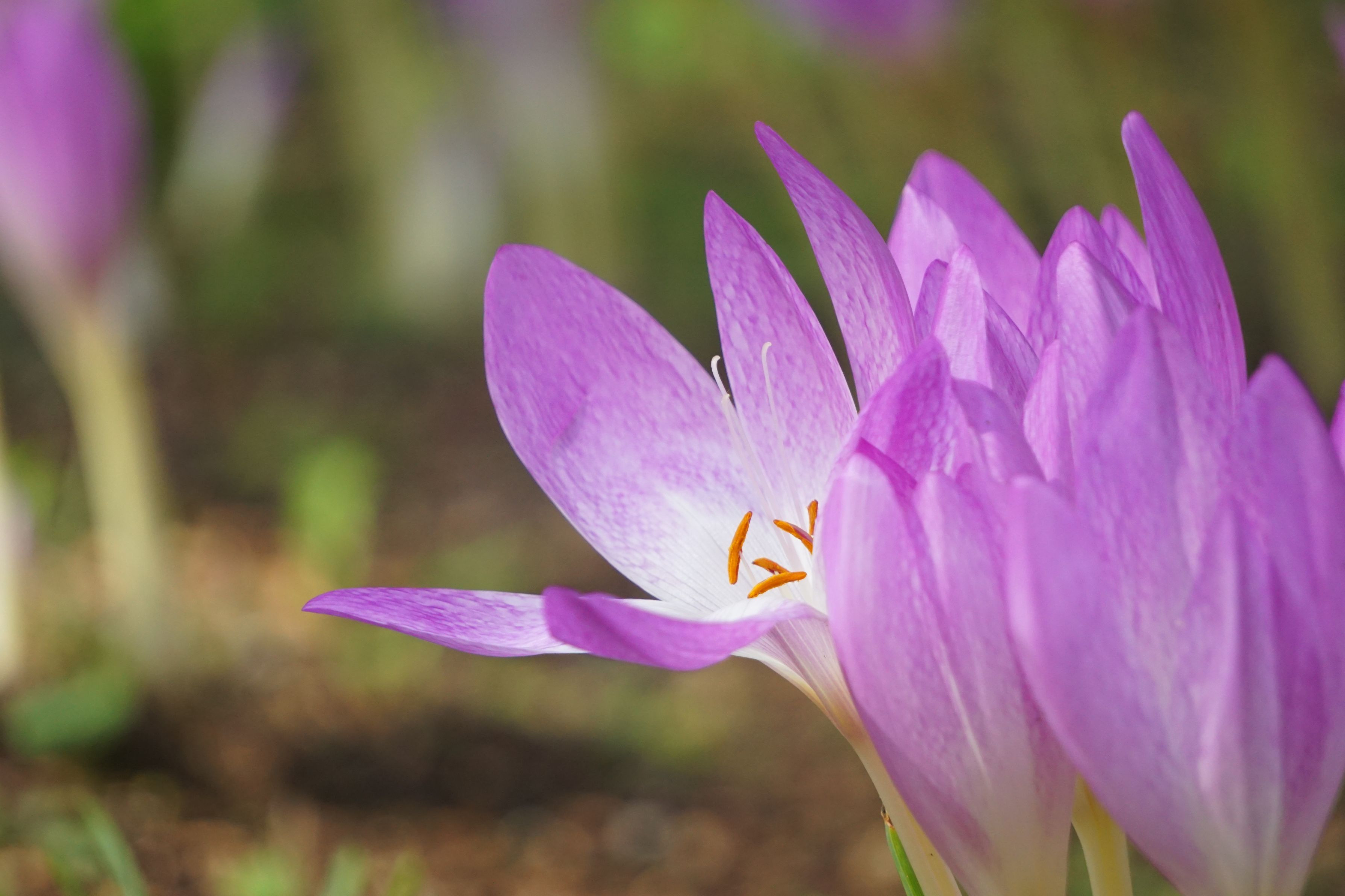 ちっちゃめのイヌサフランが、こちらを呼んでいるかのように咲いていました。