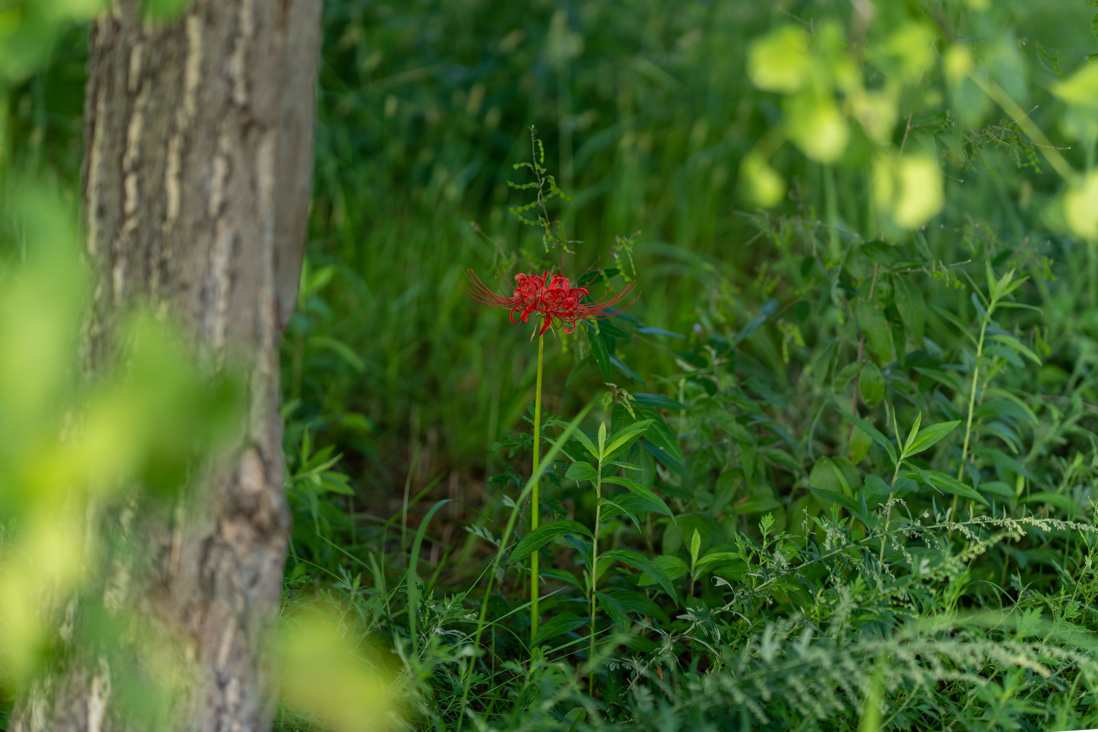 公園を散歩中、ひっそりと咲く一輪の彼岸花。 一人ぼっちな彼女の姿ですが、強い生命力を感じました。