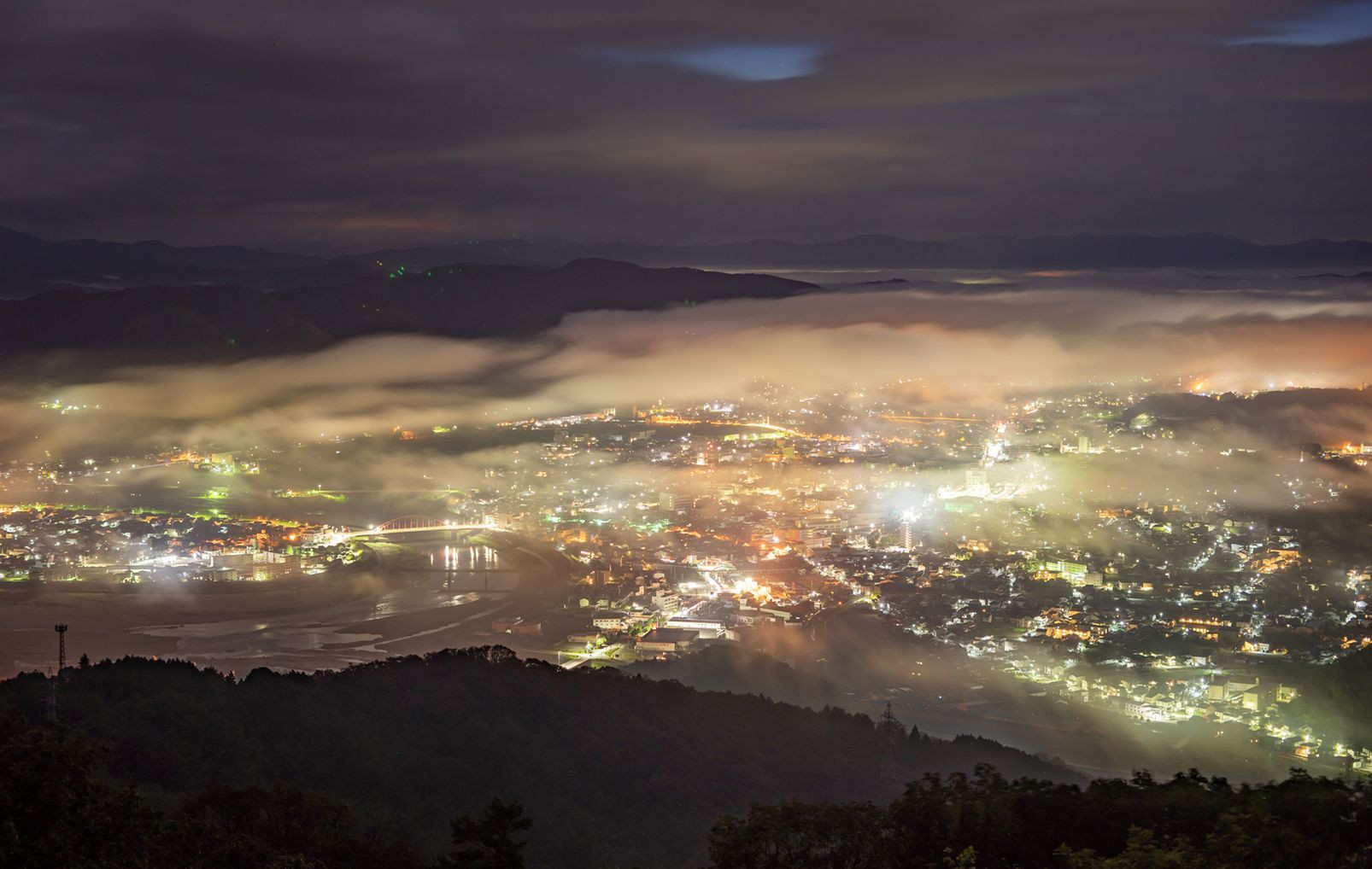 夜明け前、三次の街が霧に包まれてきました。