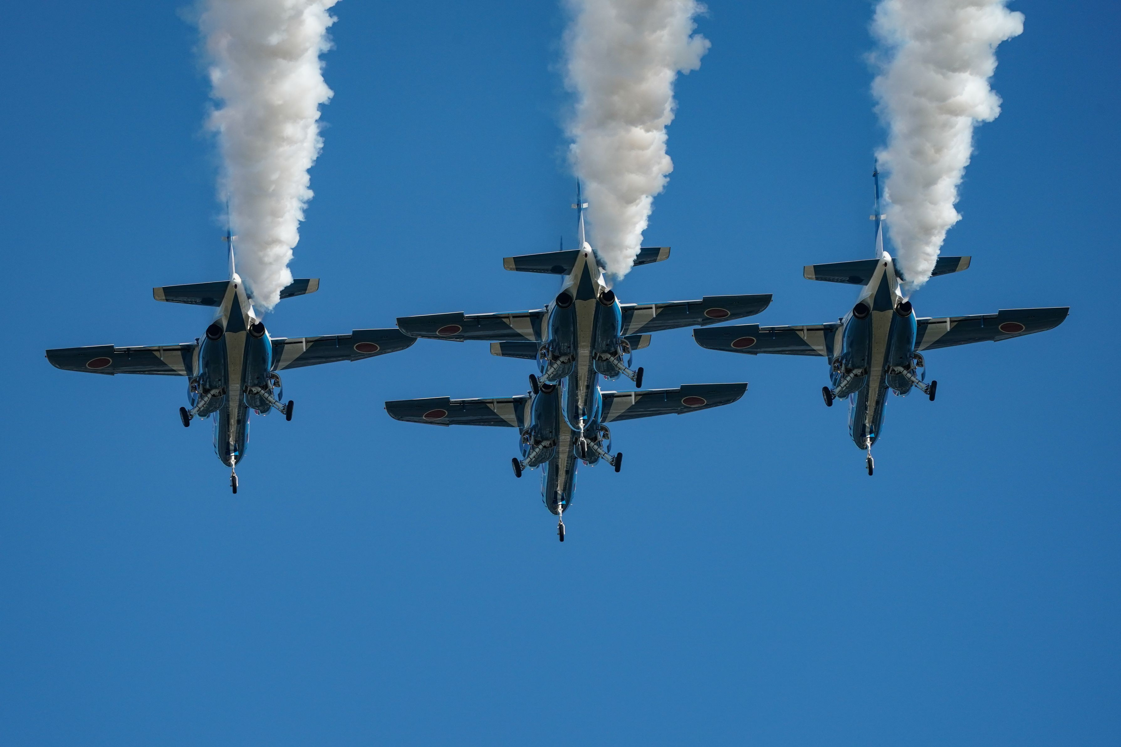 ブルーインパルス岐阜基地訓練より。 博物館横の田んぼの真上を飛んでくれたので面白い写真が撮れました。