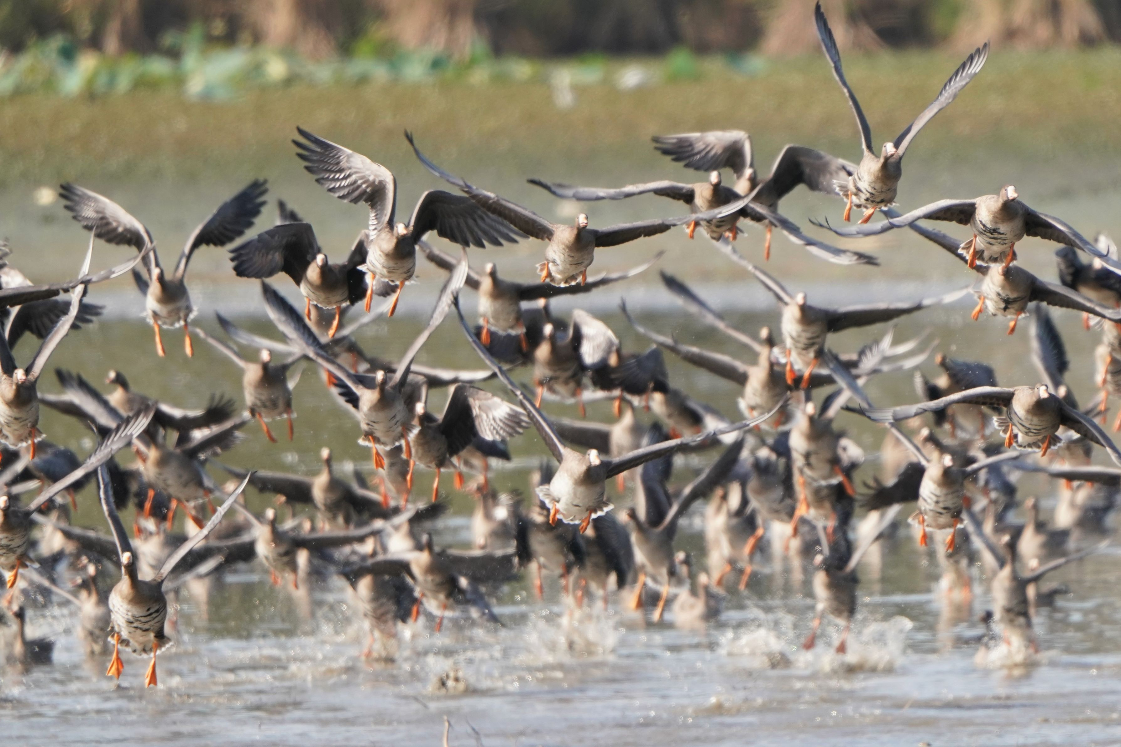マガンの飛び立ち