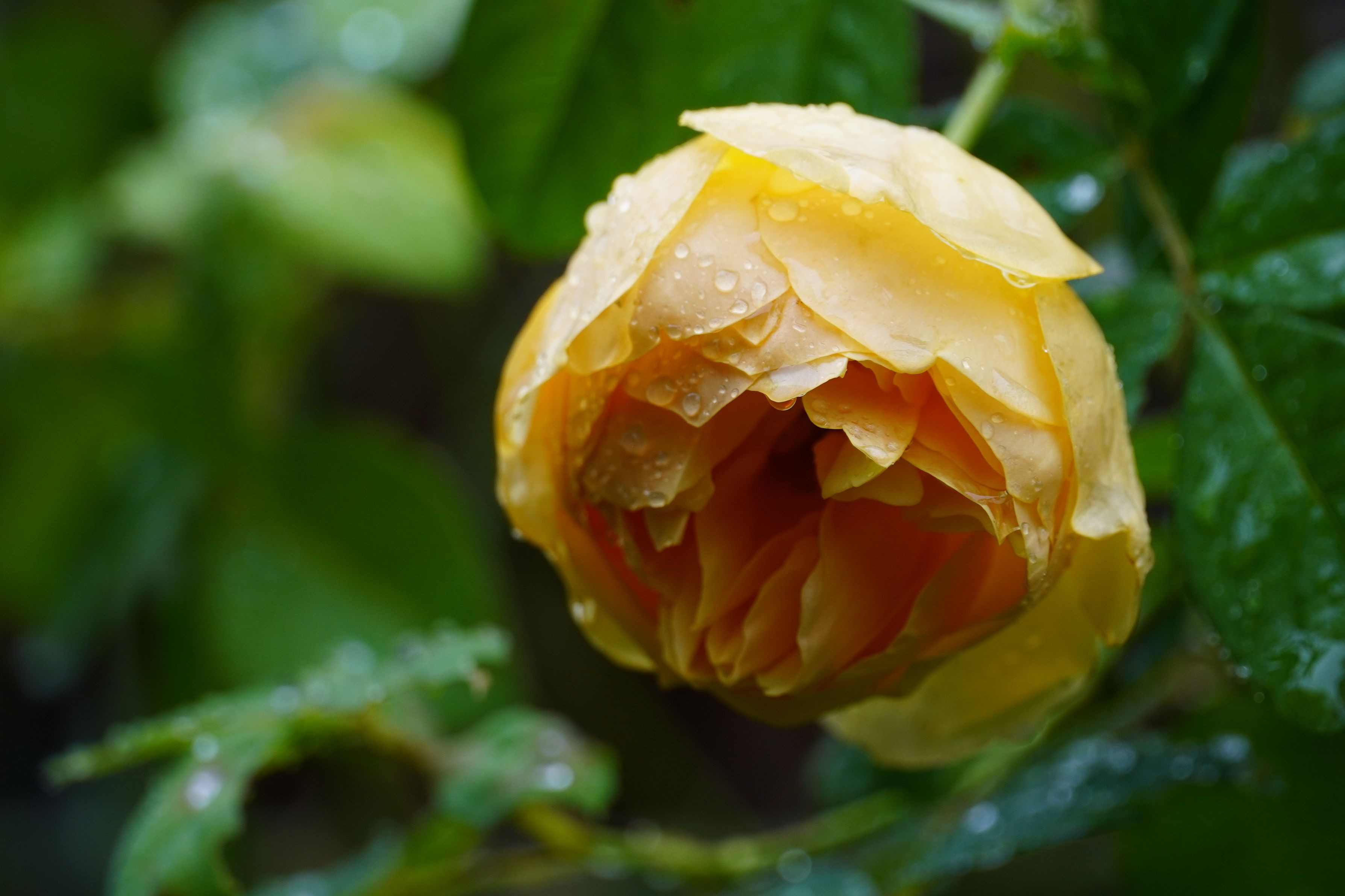 せっかくの日曜日もあいにくの雨。庭では秋雨に耐えながらバラが咲いている。