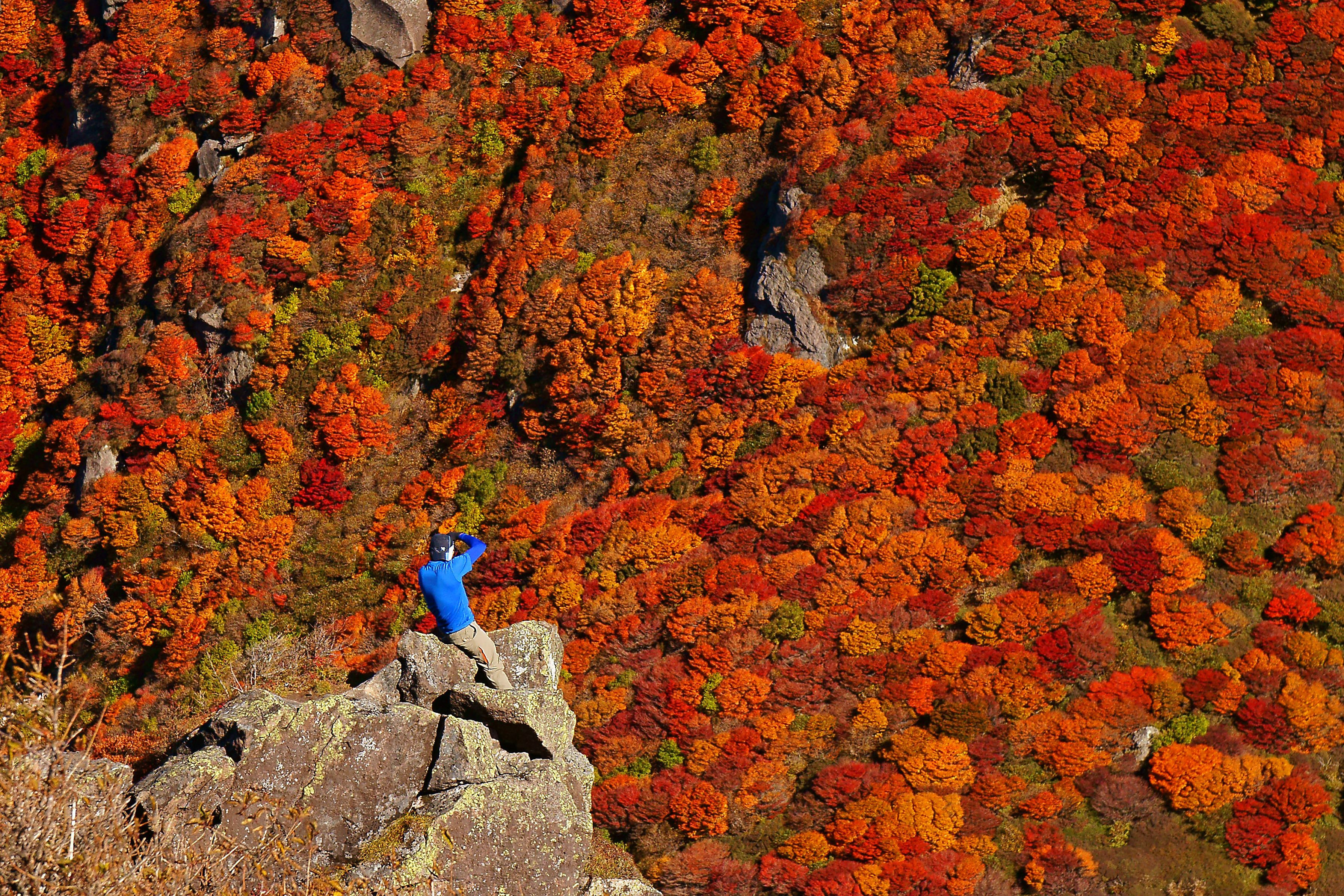 いい写真が撮れそうですが、私には絶対無理。(2015年10月・久住)