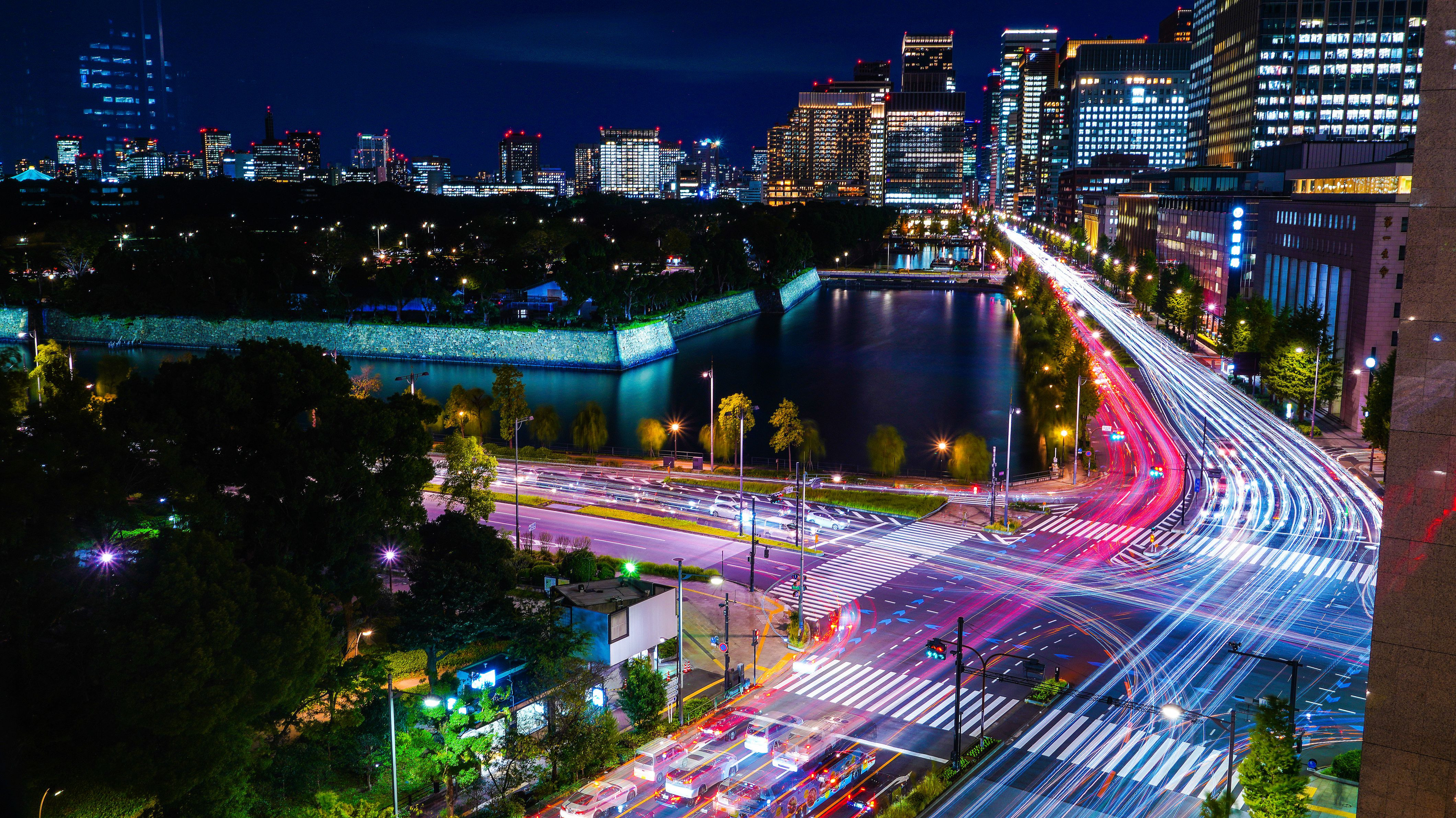 日比谷通りと晴海通りが交差をする皇居石垣・ビル群の光跡夜景です。 一番撮りたかった場所で、この日は風が強く寒くて大変でした。 映り込み防止のアイテムを買ってやっと撮りに行きました。 @東京ミッドタウン日比谷にて NDフイルター使用