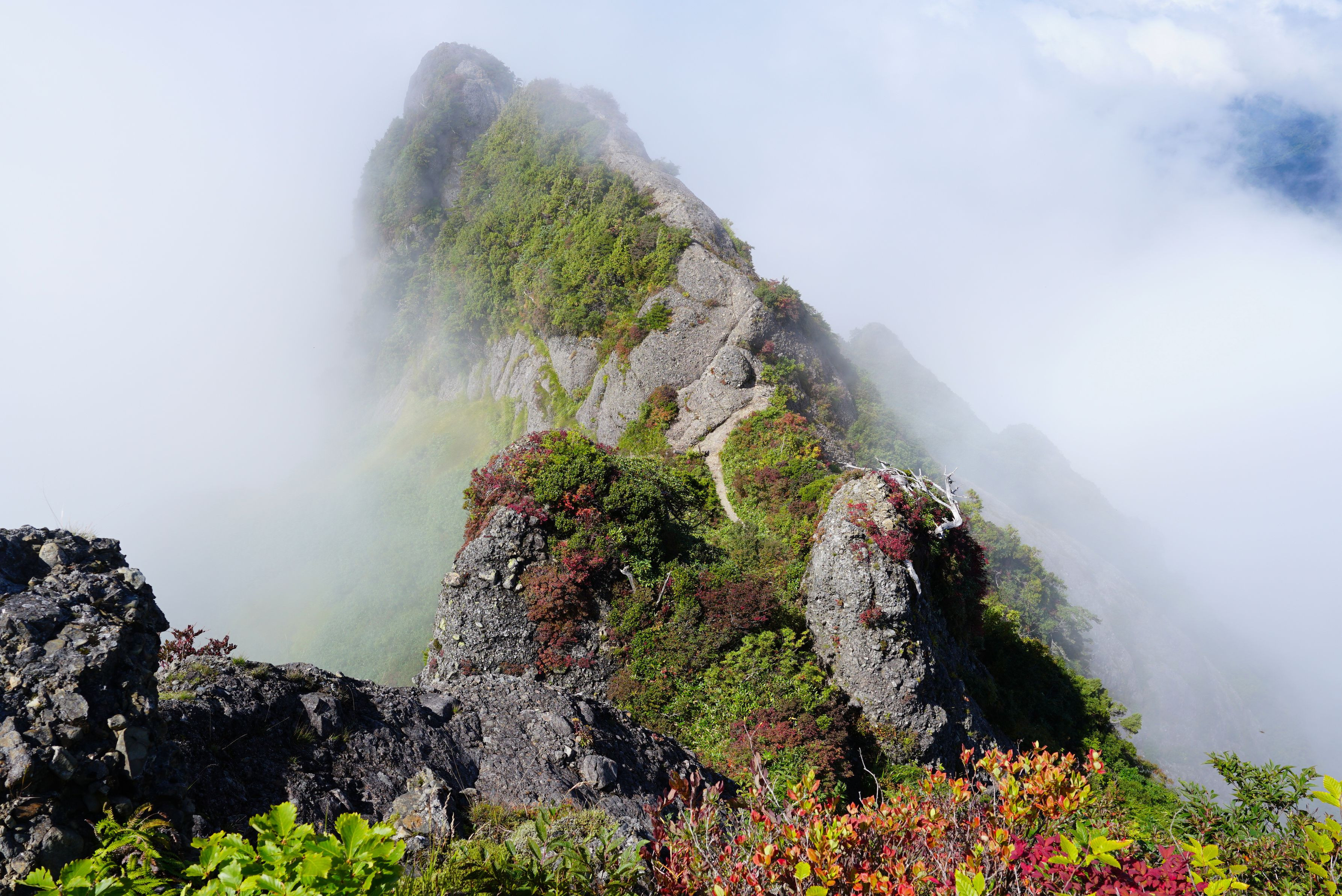 ガスが晴れて歩いてきた稜線美を振り返る♪