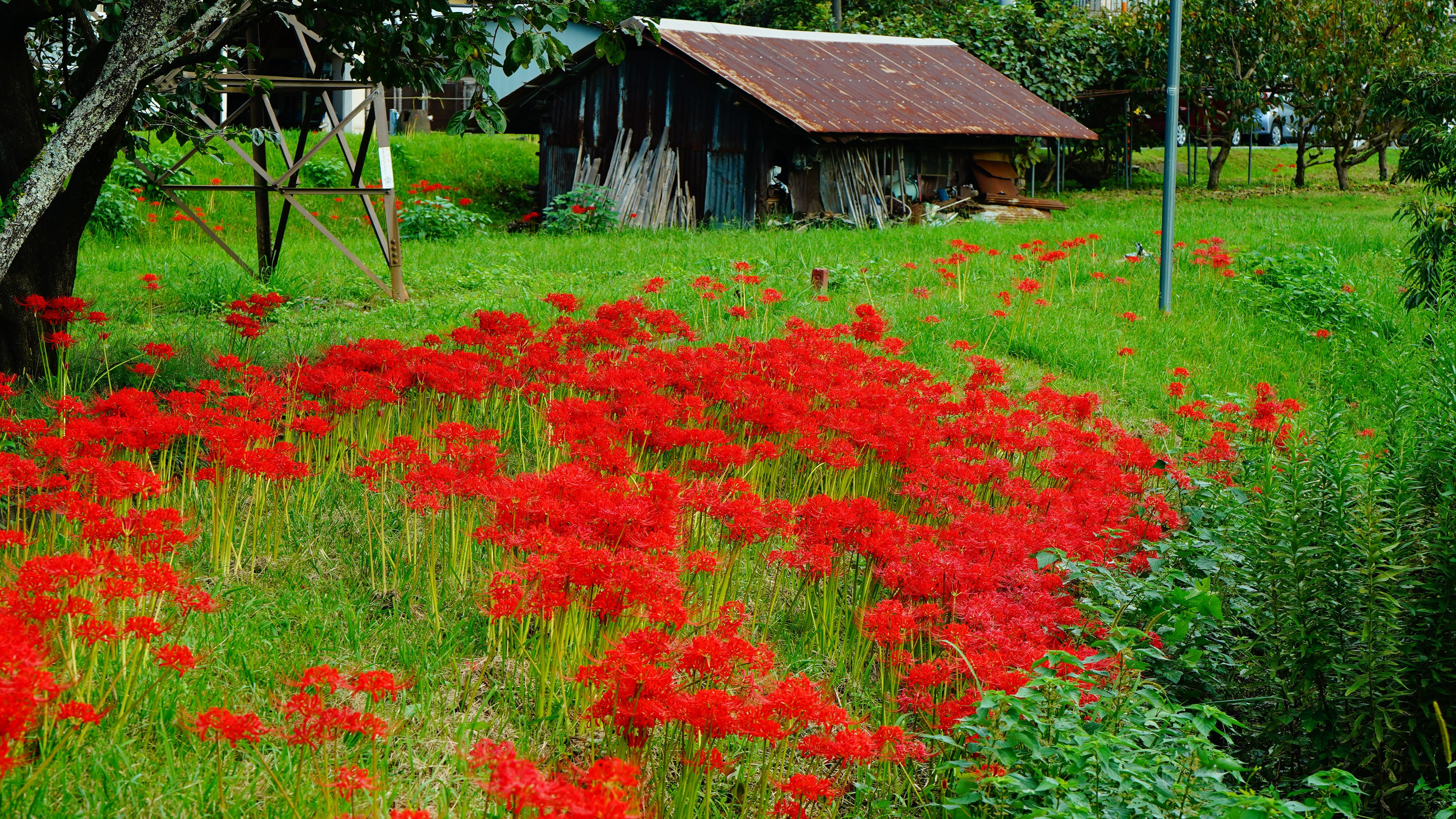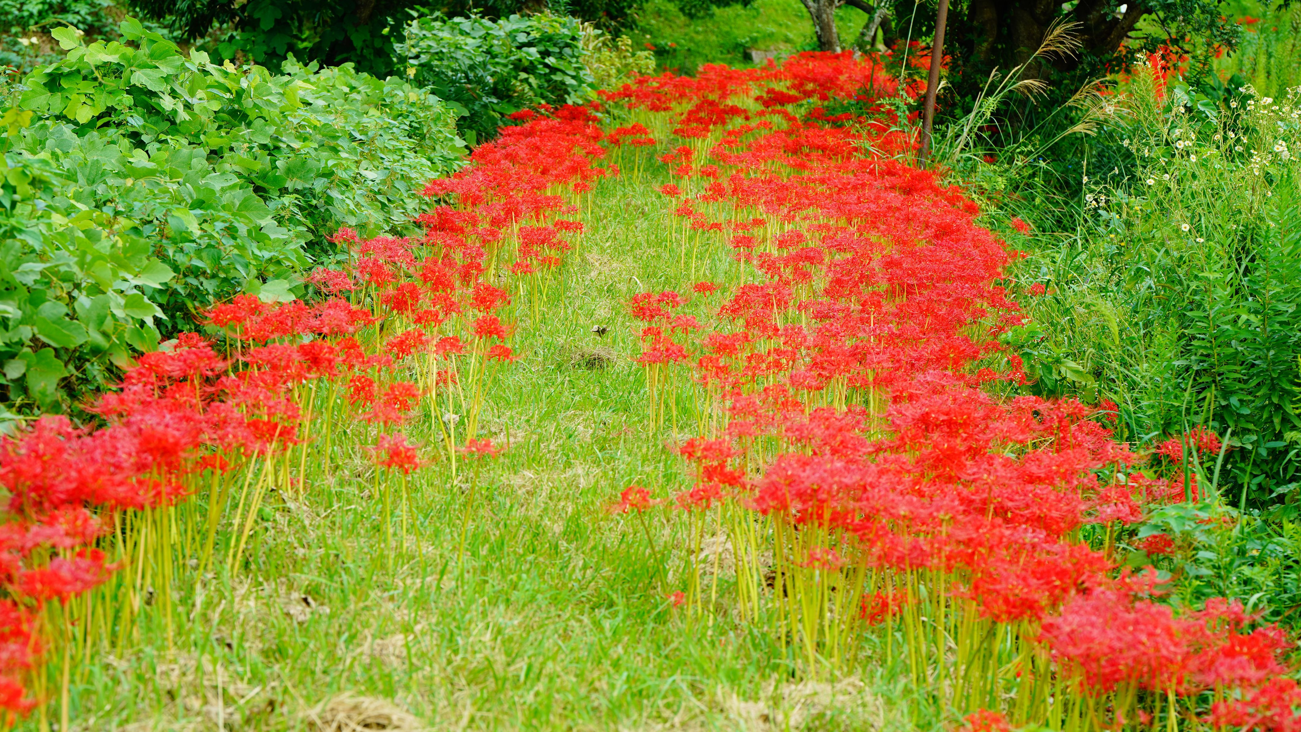 京都府の奈良県の境に位置する木津川市 木津川沿いで見つけた彼岸花の群生。