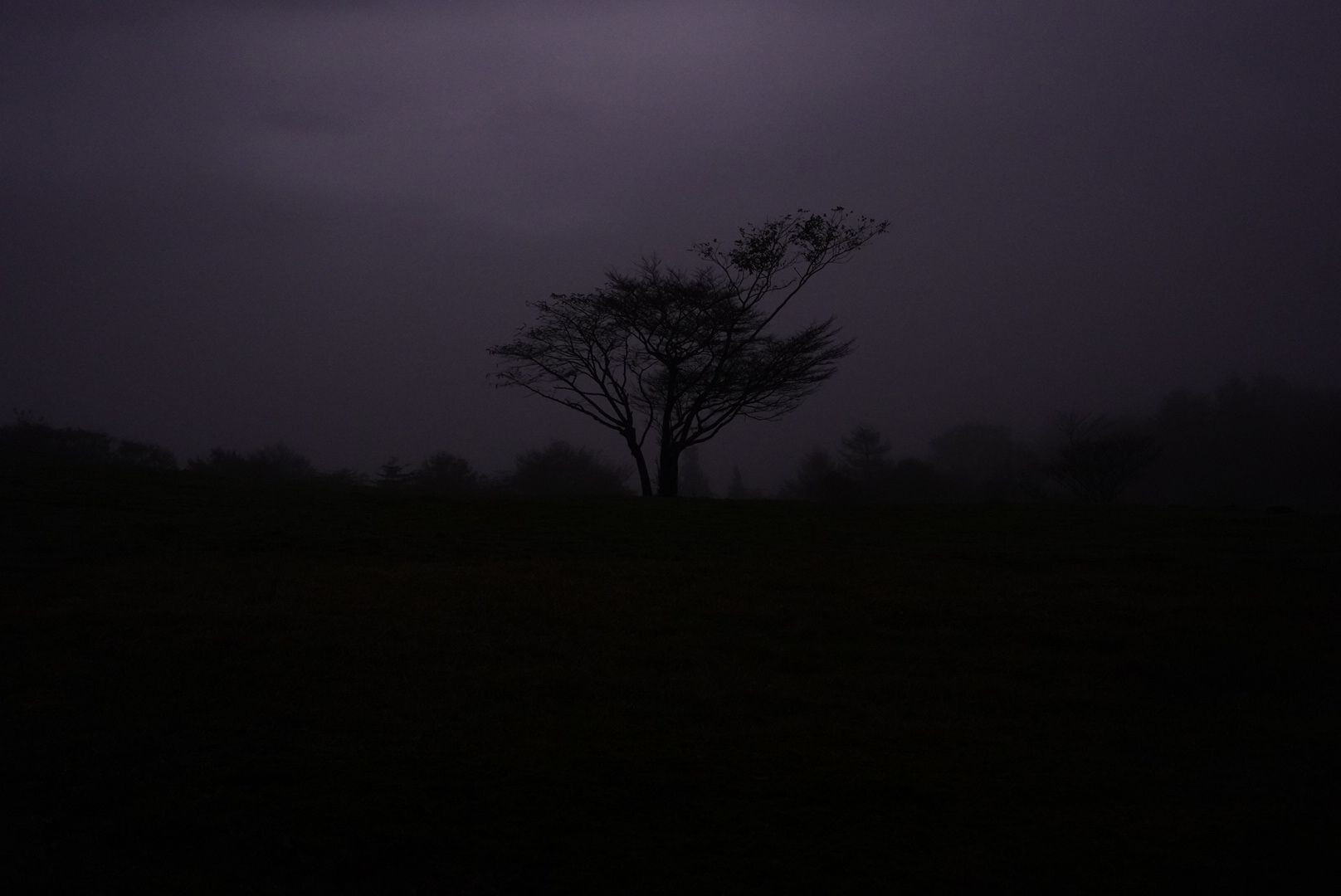 愛知県の茶臼山にて早朝に霧が出ている中撮った写真です。 レタッチはしていません。