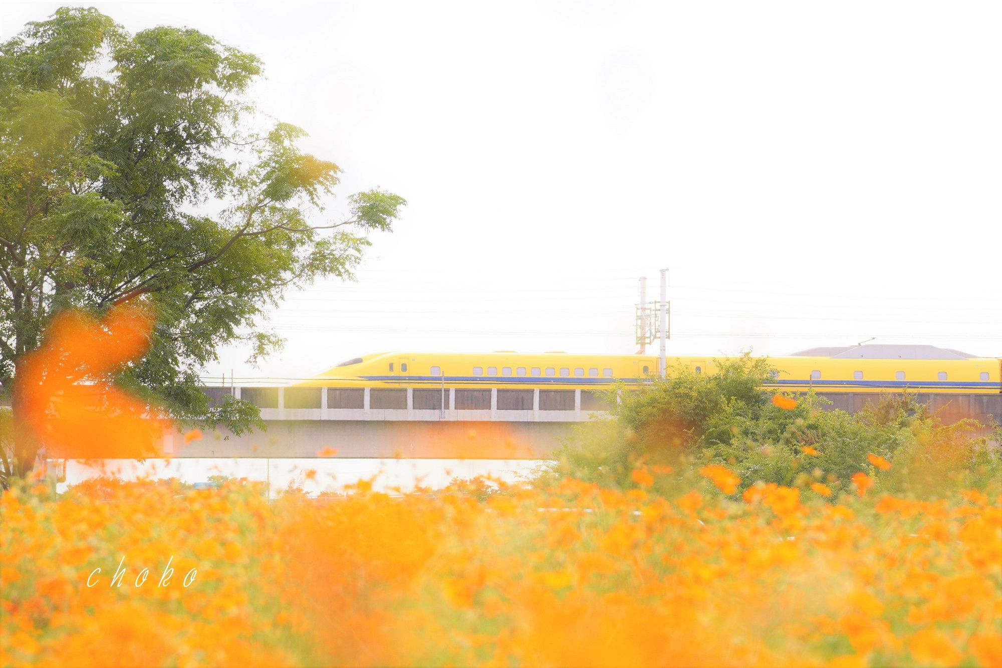製品情報>My Sony>αcafe>ドクターイエローとキバナコスモス(chokoさん)