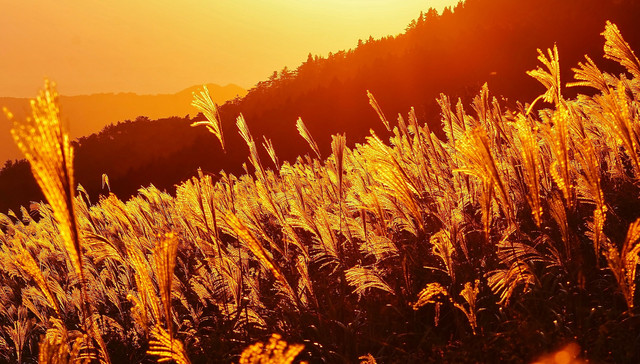 夕日に染められた黄金のススキ、昼間の日差しに煌めくススキ。 撮り終えたあと悲劇が待ってました。第2駐車場の閉門が16時半とは…^^;
