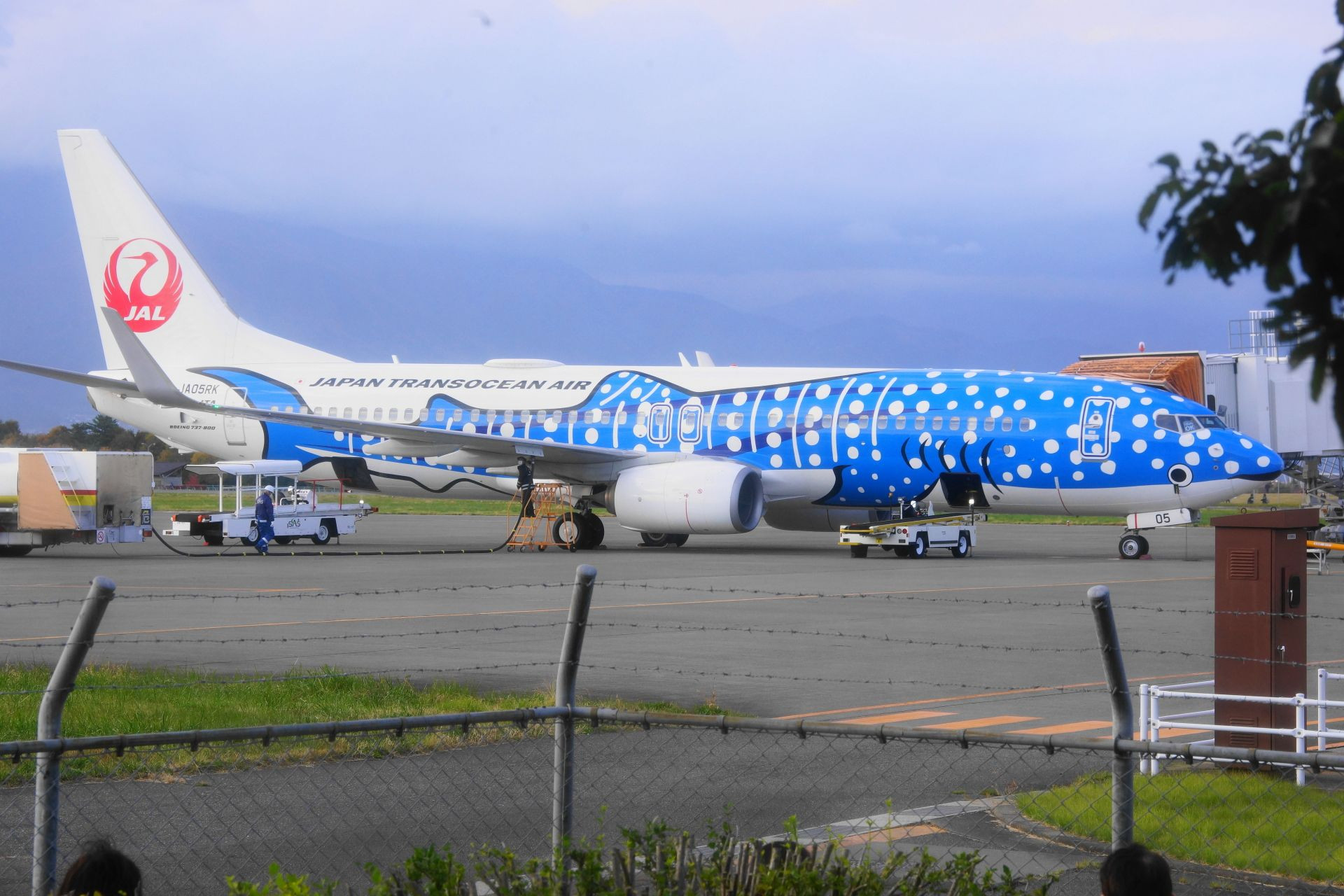 沖縄の「美ら海水族館」のジンベエザメを デザインした、チャーター便です。