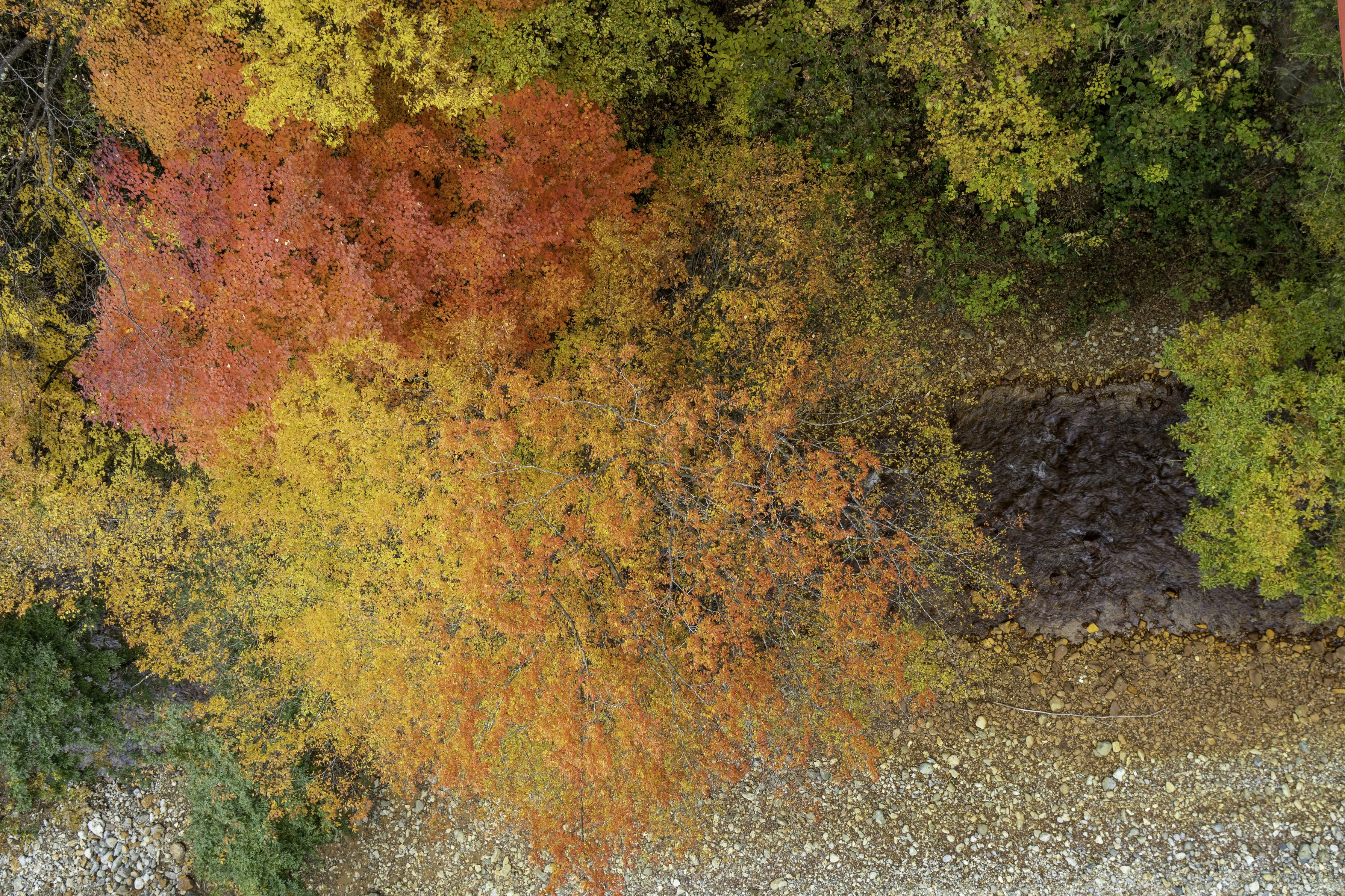 橋の上から。長野県高山村の松川渓谷の紅葉