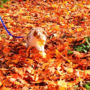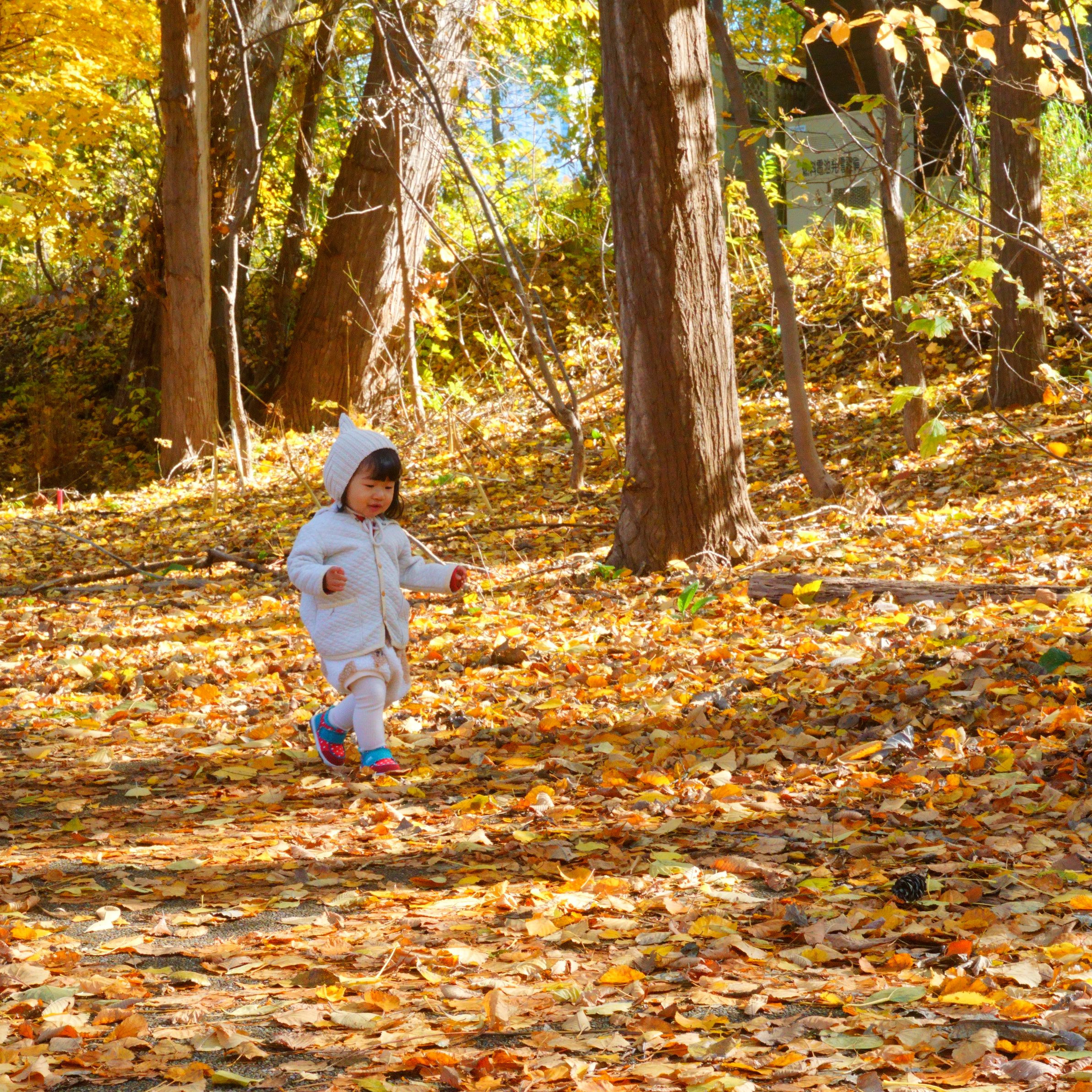 落ち葉の中をお散歩です。