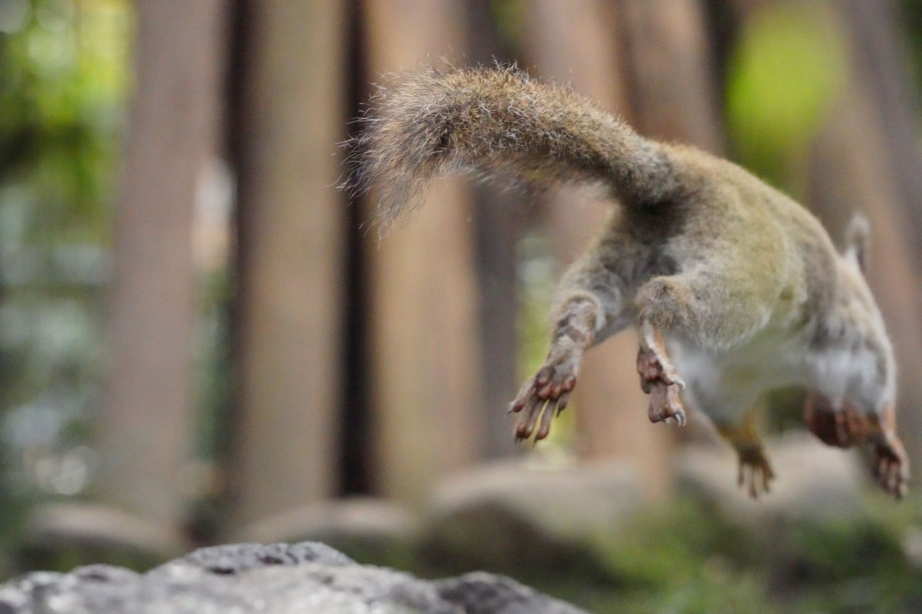 秋の栗鼠 石から石へと 飛び跳ねる