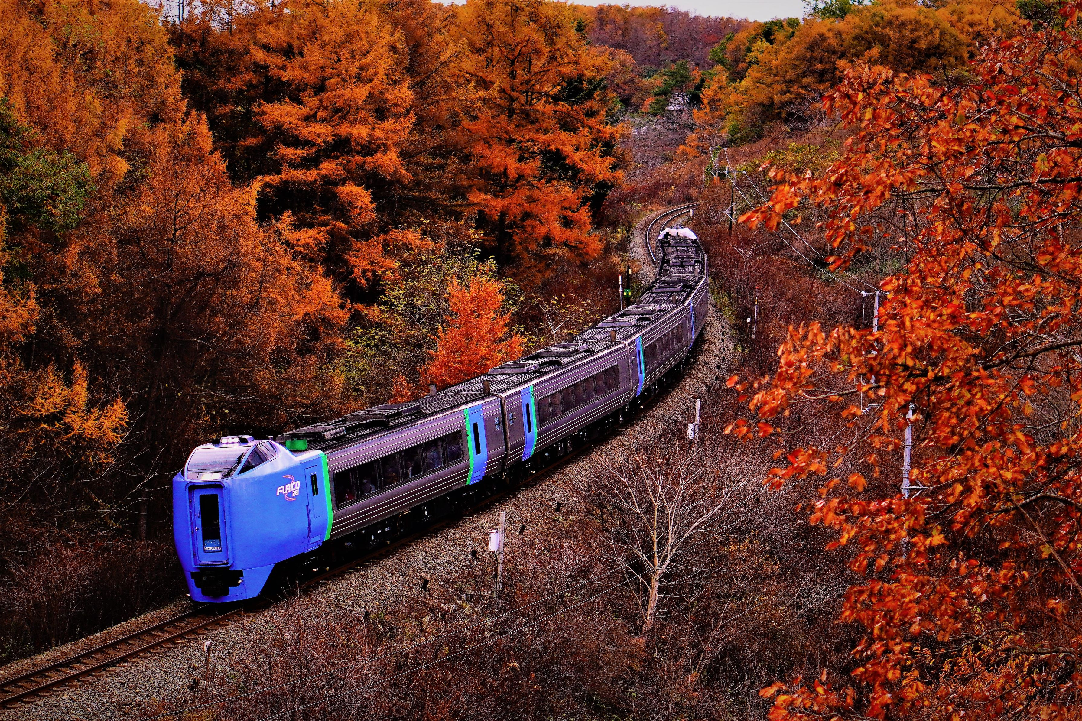 暴風雨に耐えた鉄道林、紅葉の季節は続く。
