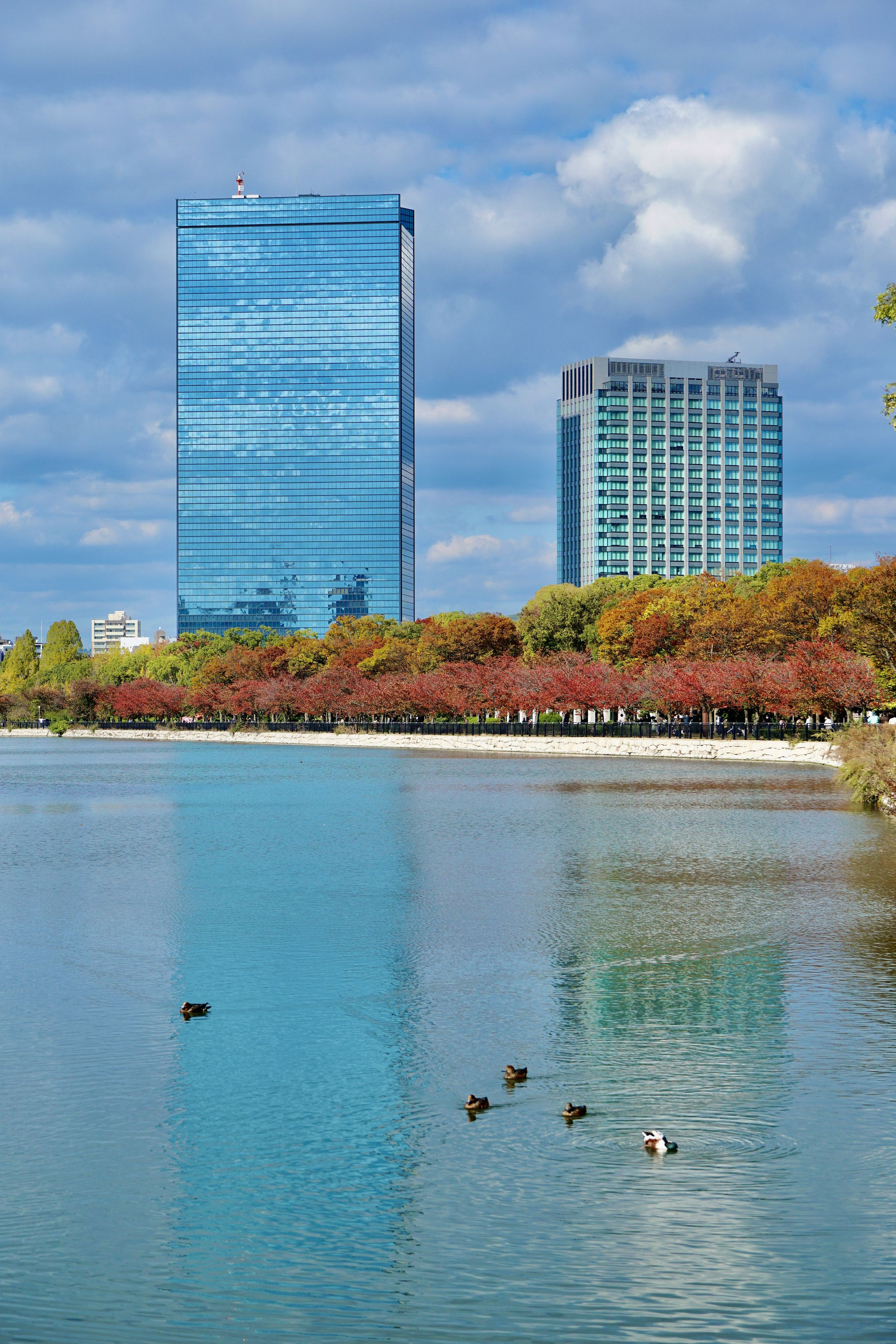 大阪城公園外堀に映る高層ビル