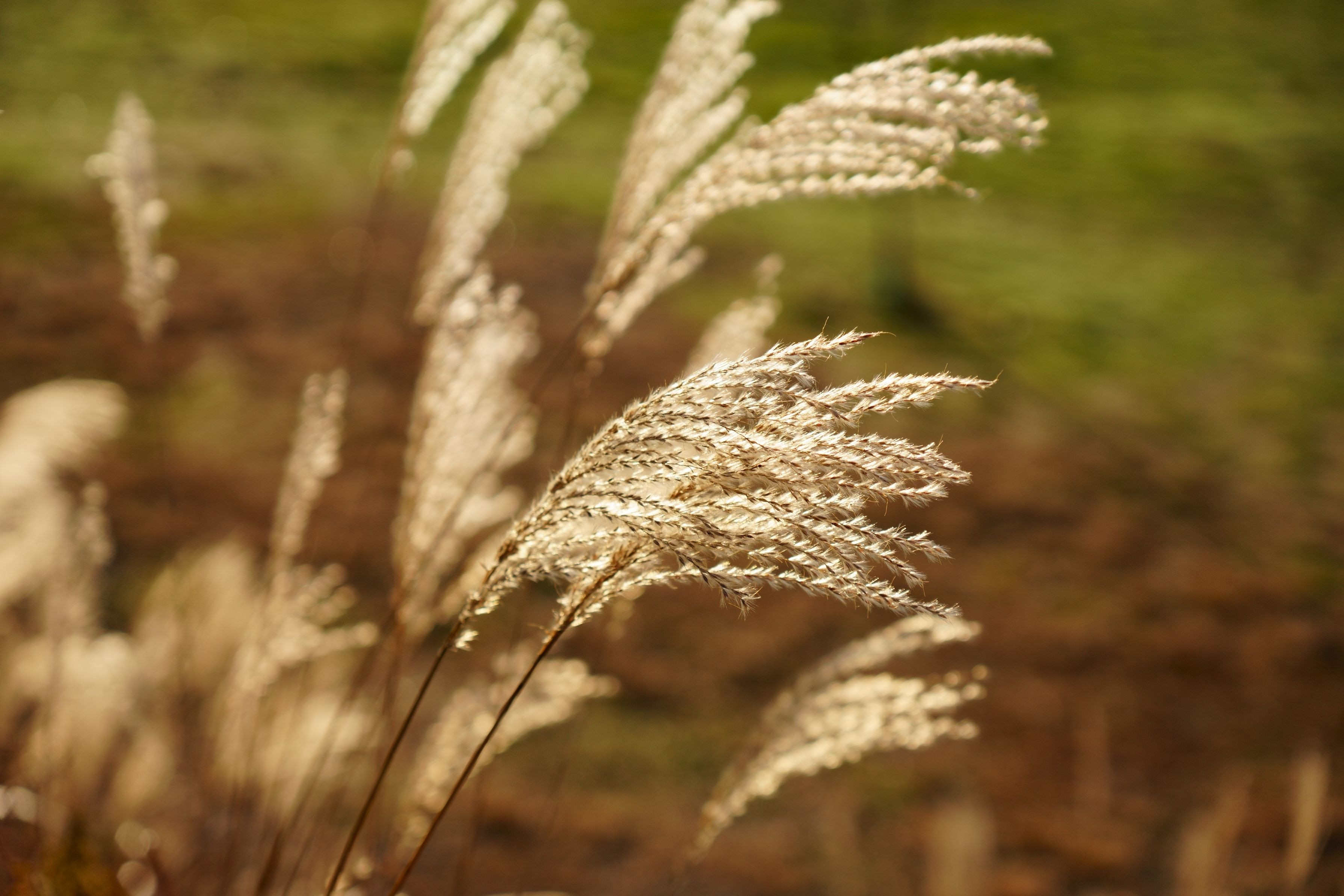 早朝の朝霧高原で、朝日を浴びるススキが綺麗でした。