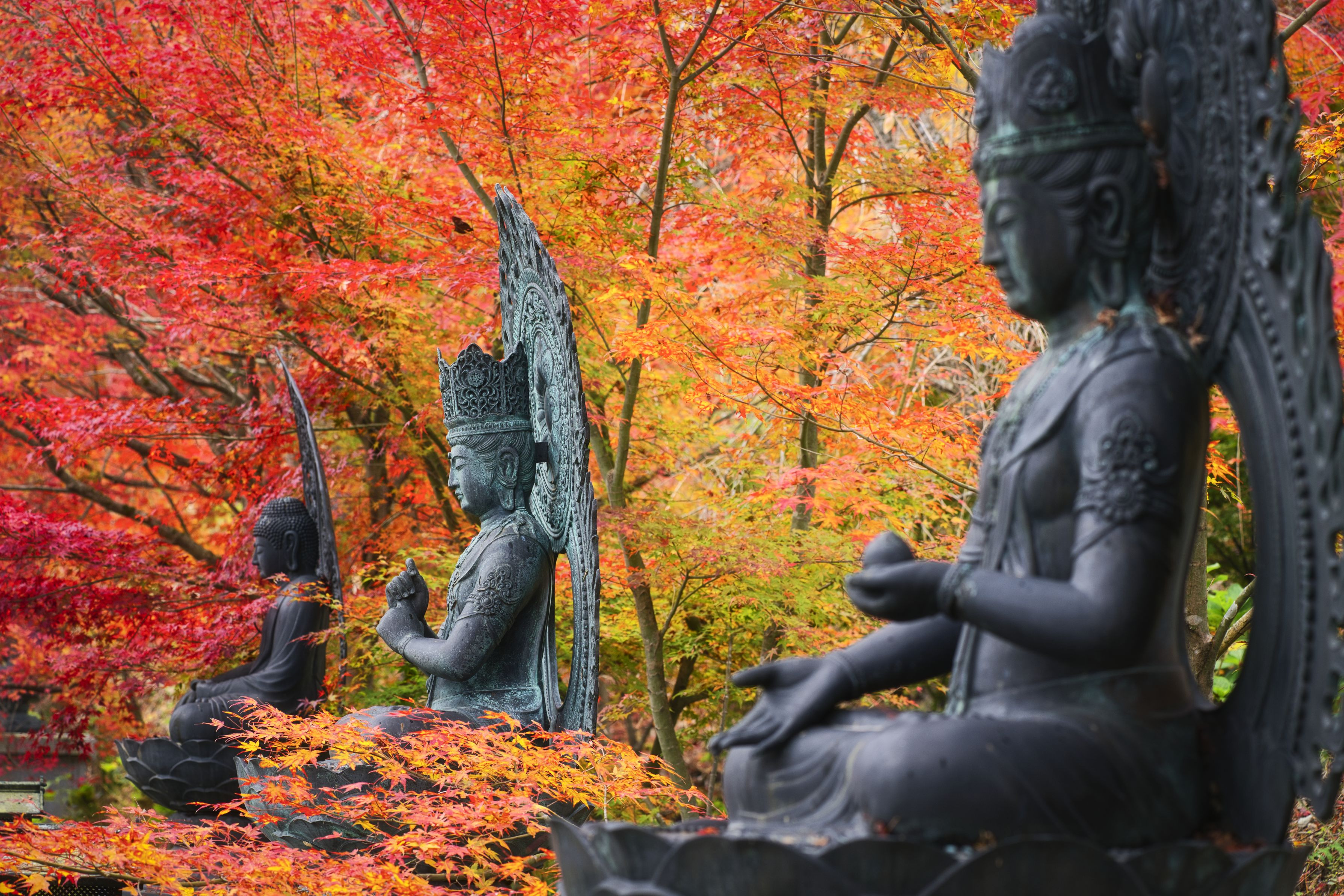 紅葉と仏様のコラボレーションを見に能登まで