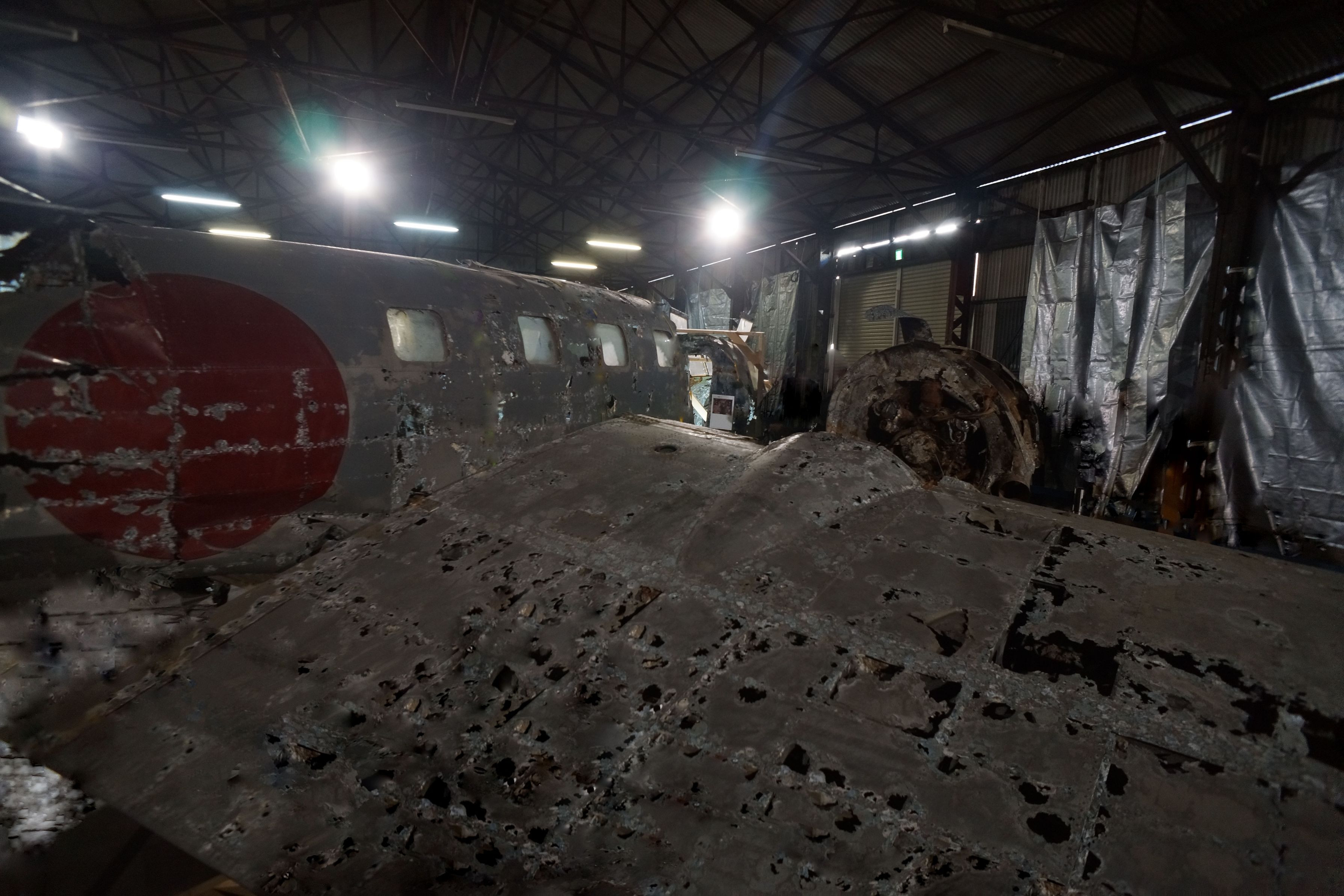 1943年に青森市十和田湖に沈んだため、戦後の廃棄を免れた国内に現存する唯一の?機体らしいです。昨日から4日だけ立飛飛行機で公開中とのことで見に行ってきました。