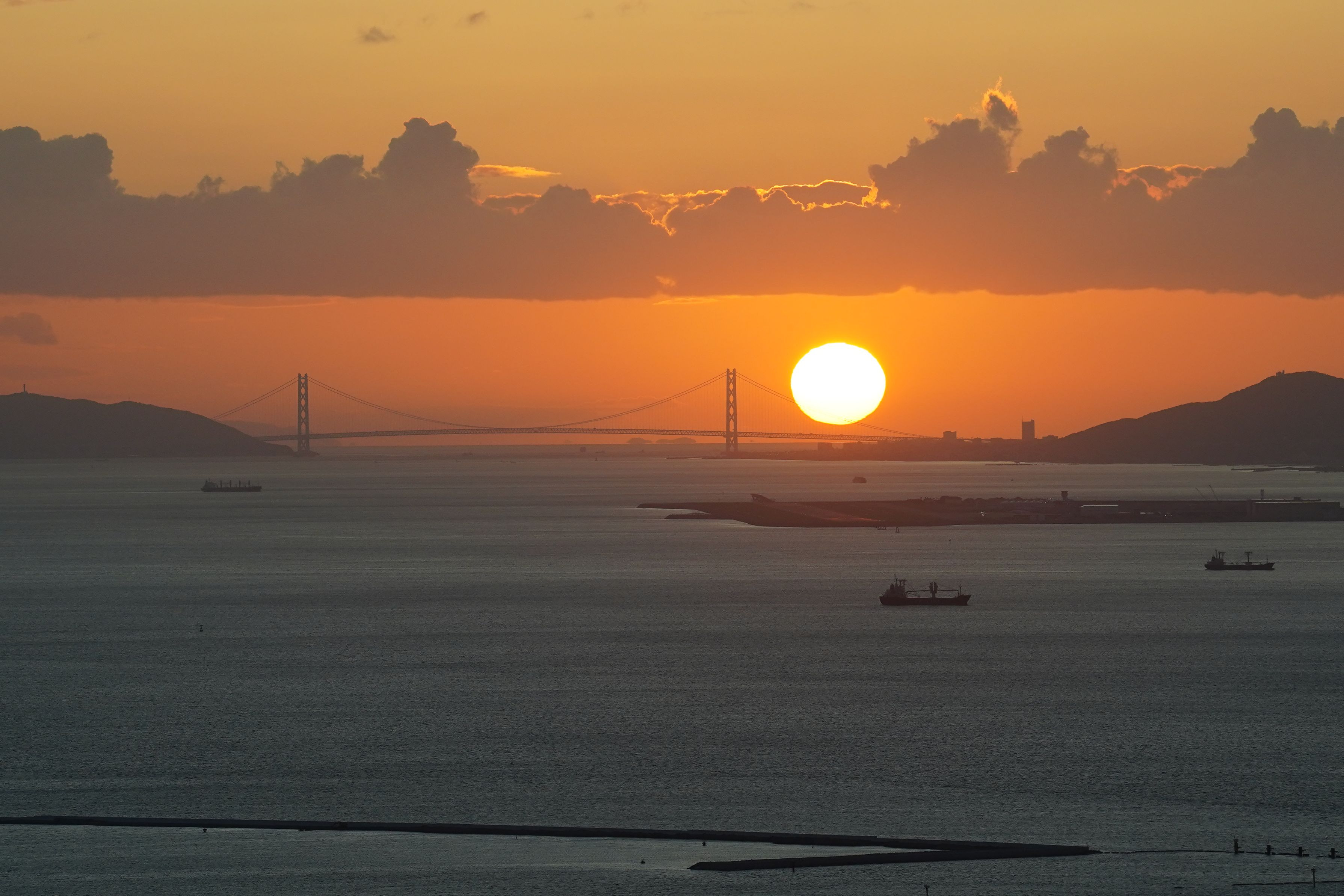 明石大橋に沈む太陽