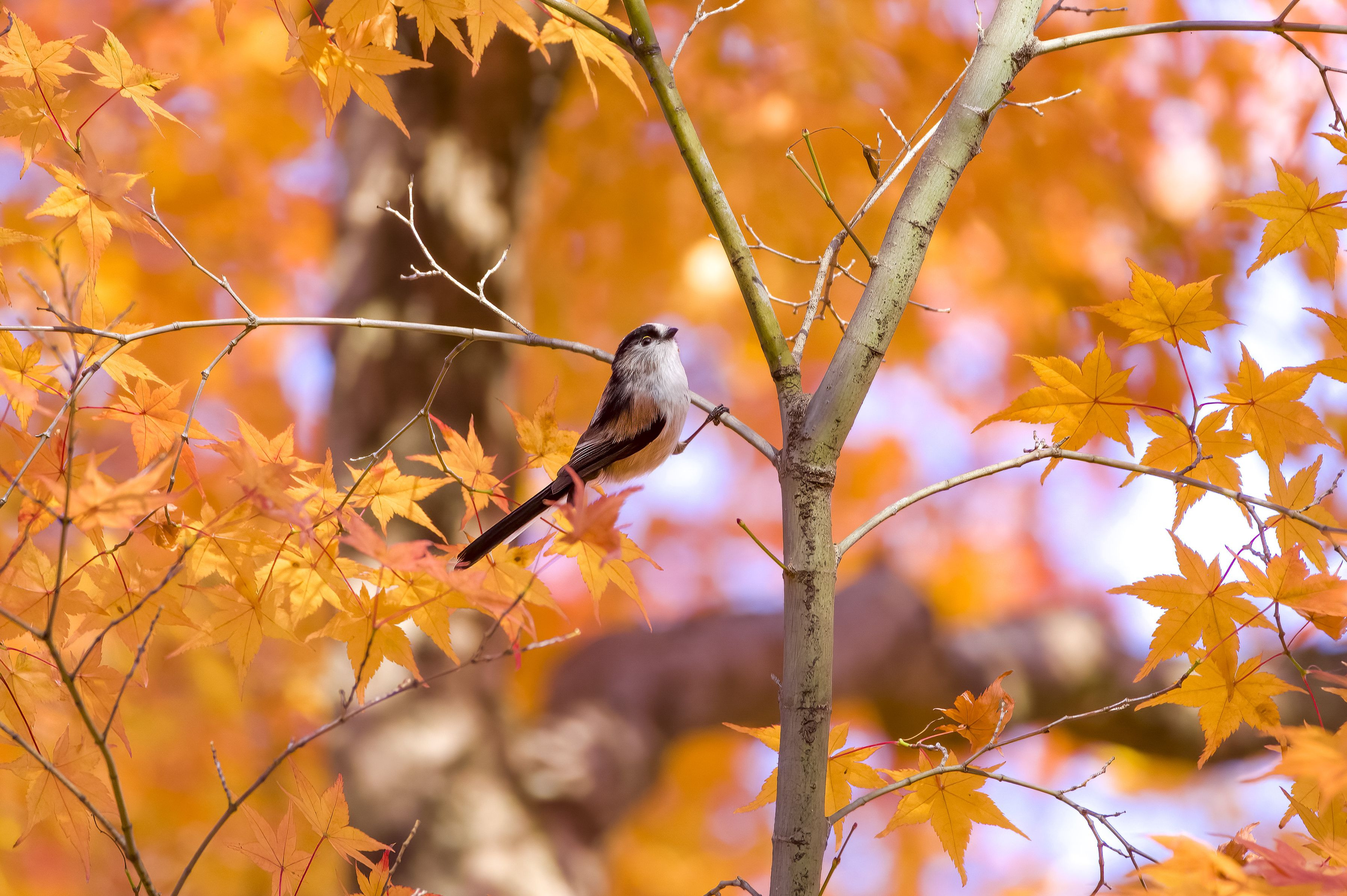 漸く、キレイな紅葉と一緒に撮れました。 #エナガ#