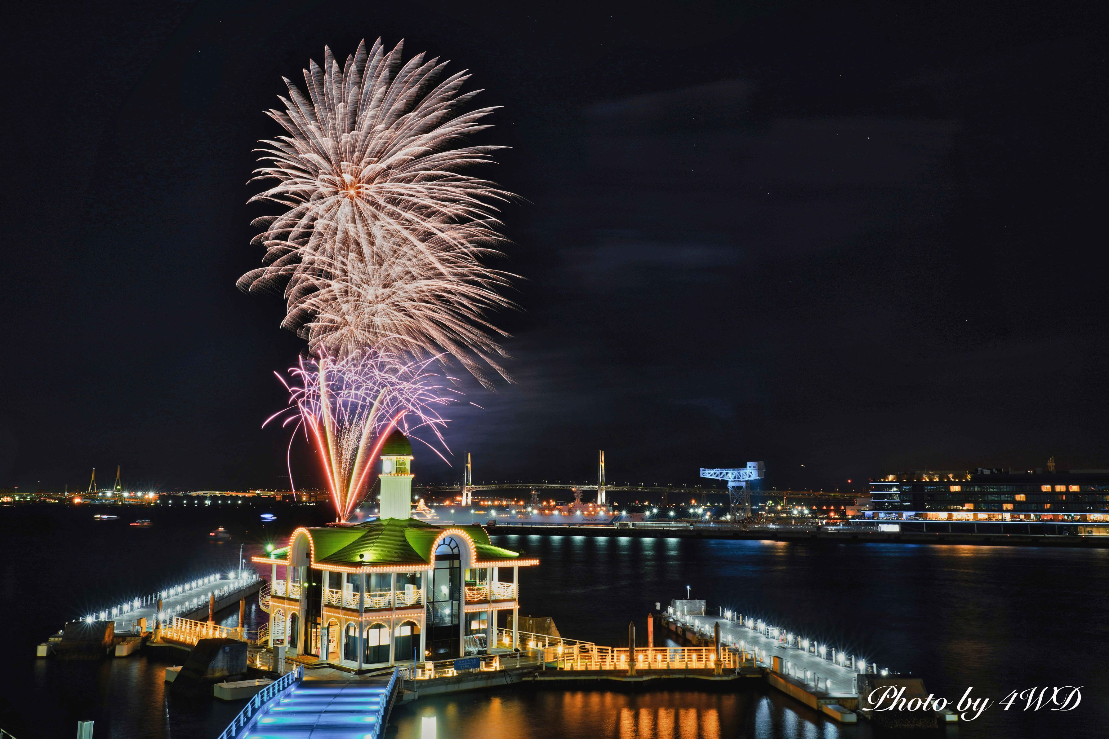 製品情報>My Sony>αcafe>みなとみらい冬の花火2021 ぷかり桟橋、ベイブリッジ、ハンマーヘッドを入れて(4WDさん)