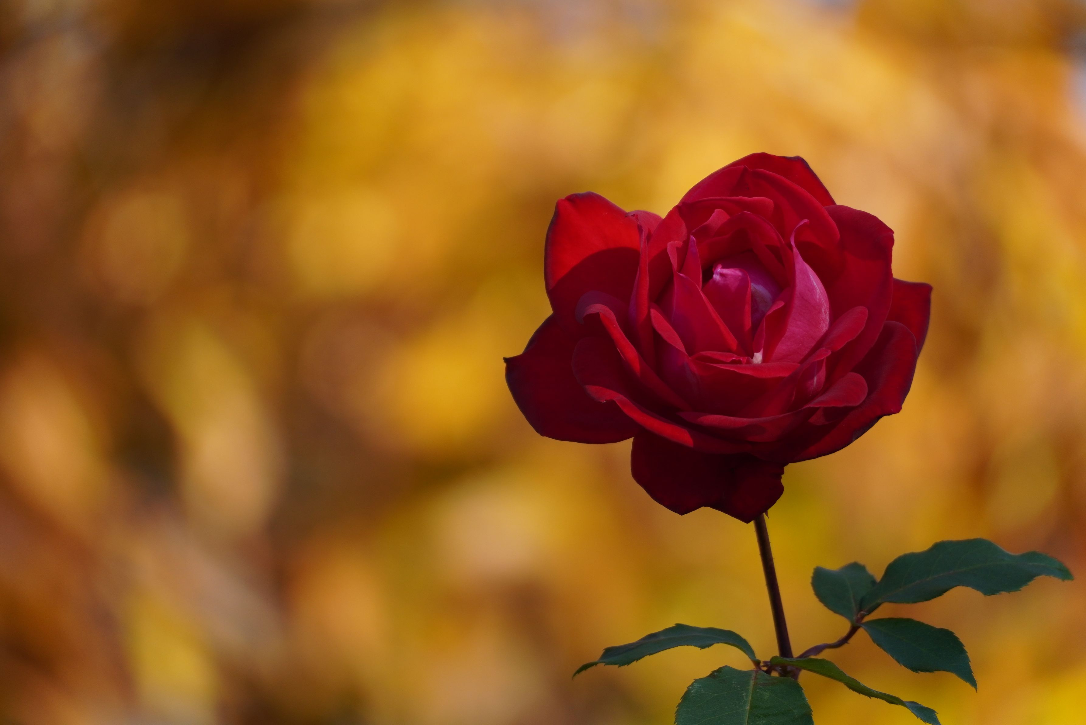 12月になってもまだ咲いている薔薇を、黄色く色付いた木々の葉を背景に撮ってみました。