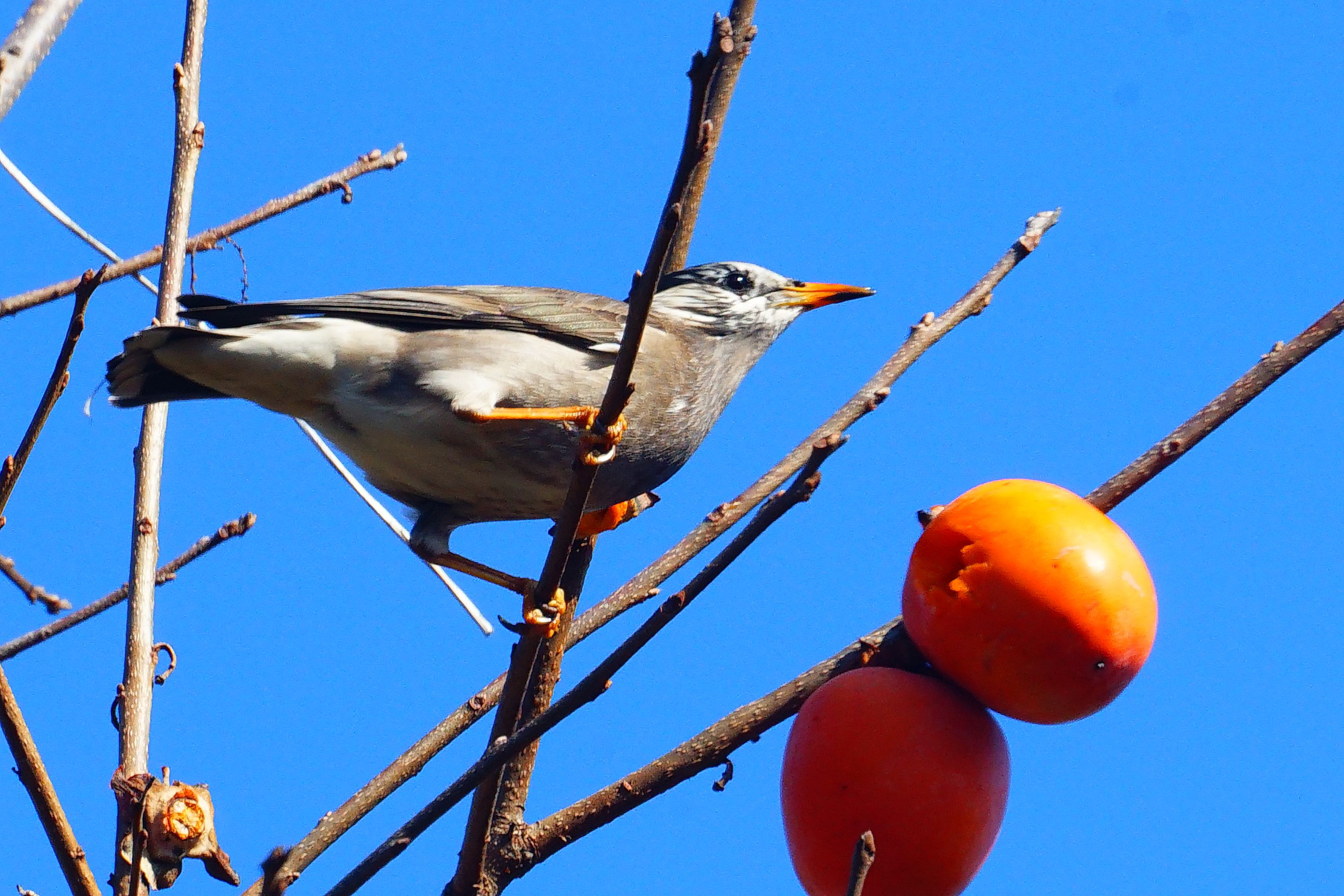 残り少ない柿を味見しては、他の鳥とせめぎ合ってる時の1枚です。