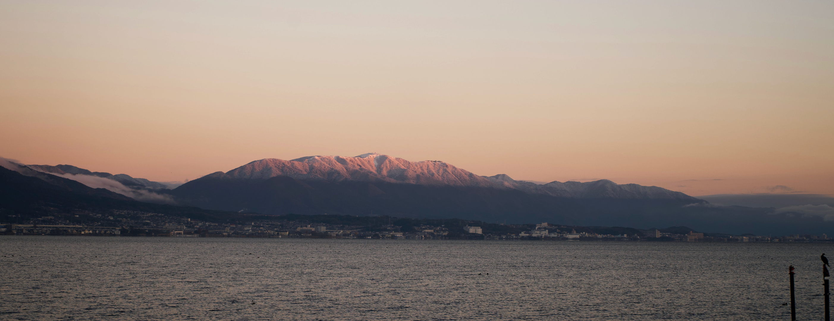 朝日が比良山脈の新雪に反射し、冬の訪れを告げる1枚になりました。
