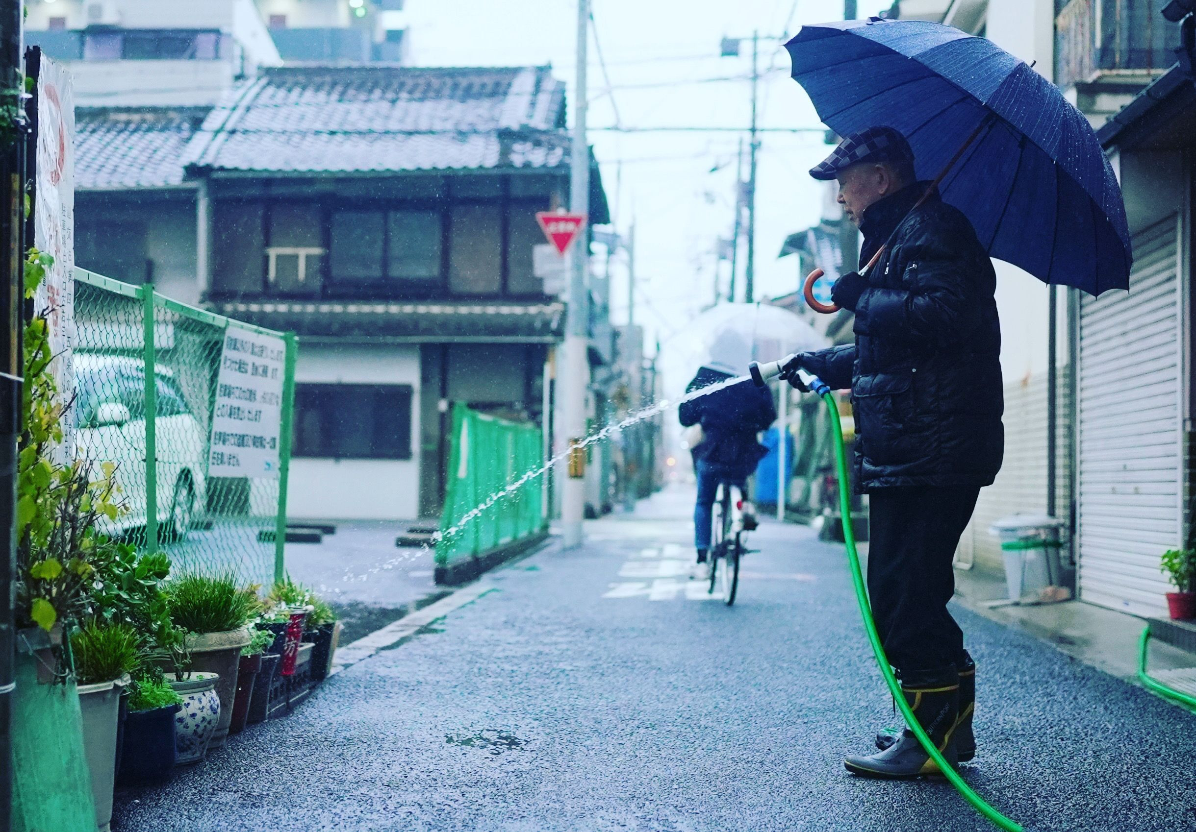 毎日同じように水を撒いて道路をボランティアで清掃しているおじさんに出会いました!雨の日も風の日も同じように水を撒いて道路を綺麗にし、通勤や通学の人が毎日笑顔にになってほしいと願いながら水やりをしているおじさん!感謝いたします!