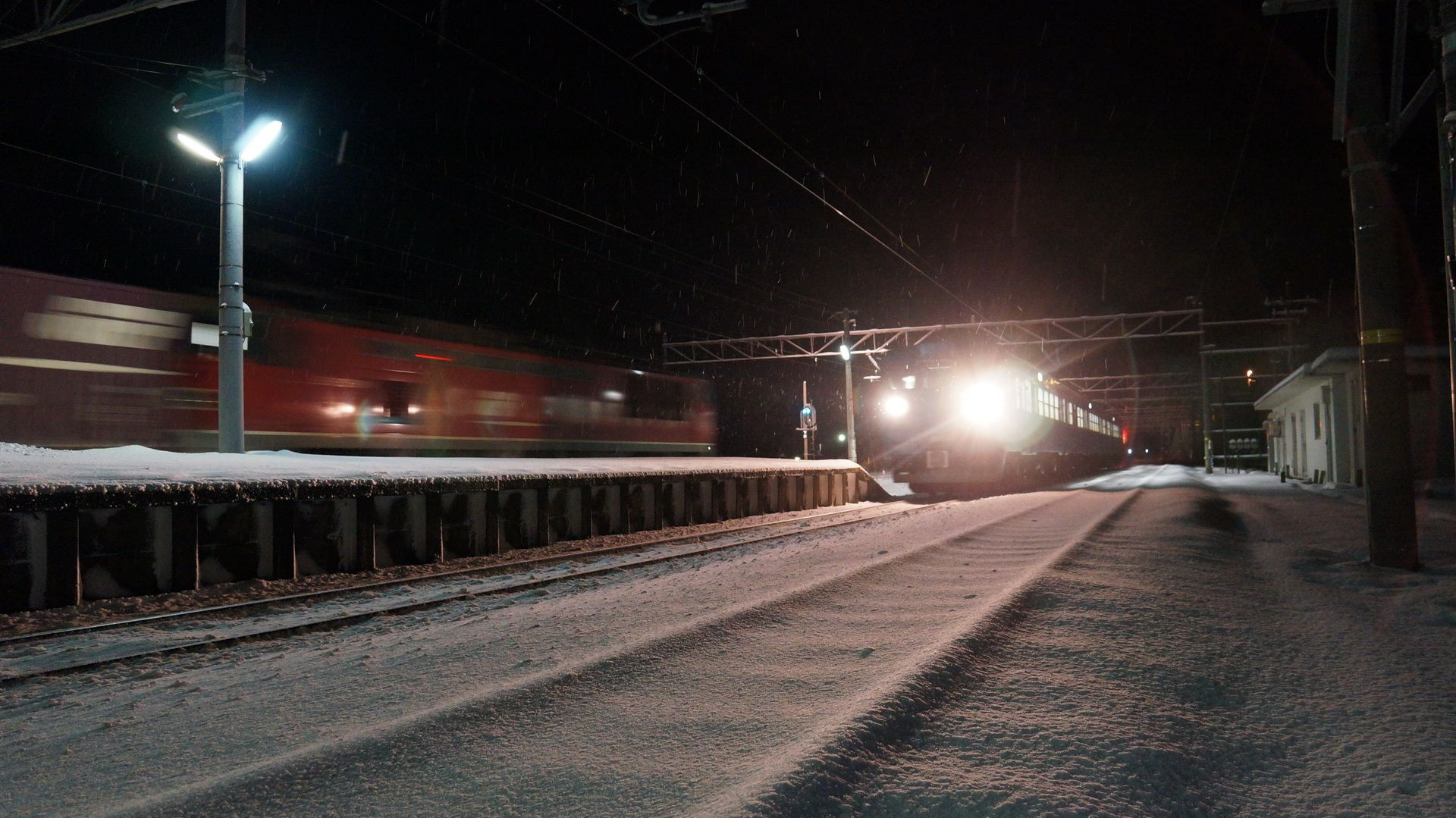 雪の深夜の市振駅