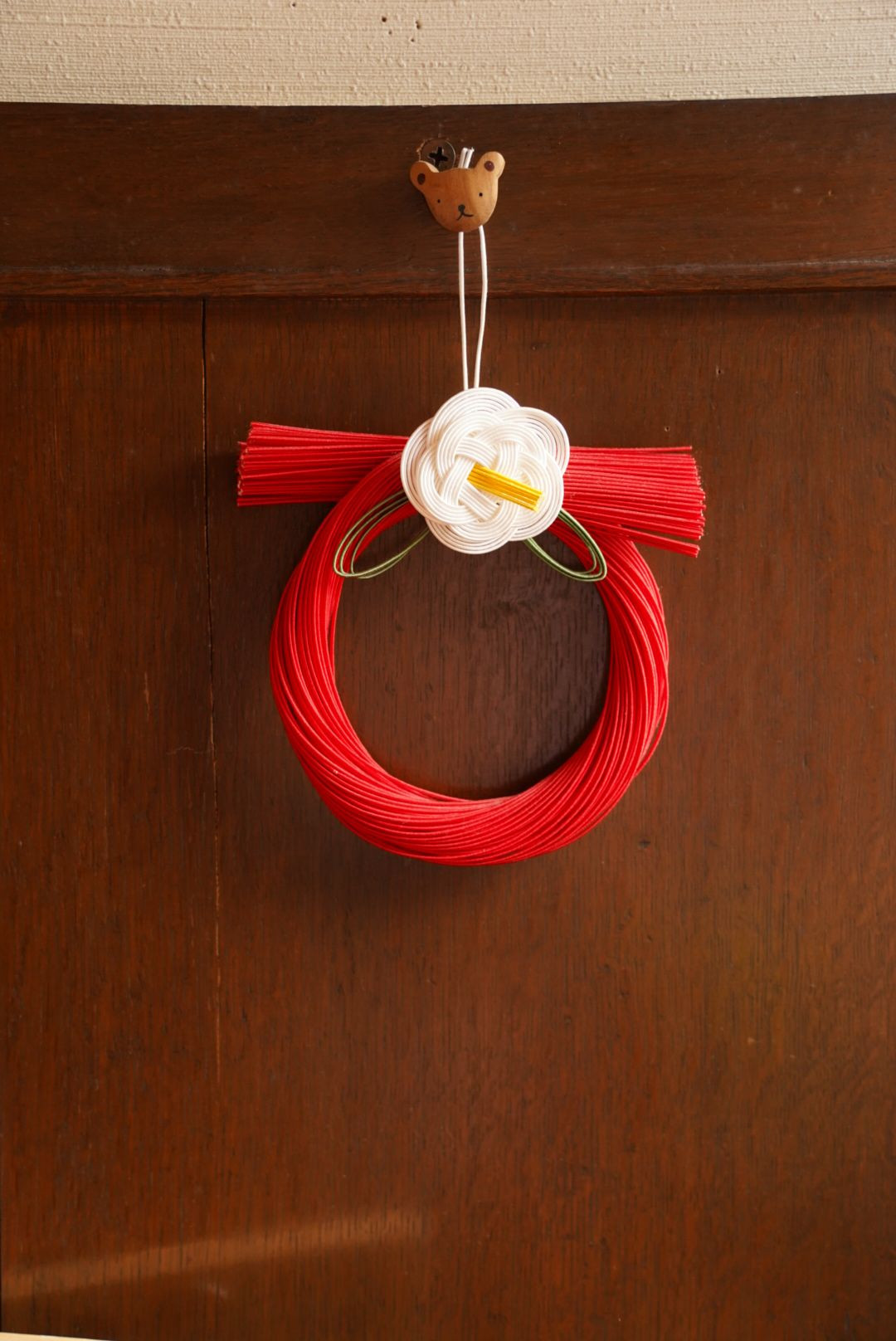 喪中で、大きな声で、おめでとうは言えませんが、せめて小さなお飾りだけでもと思い、付け替えました。