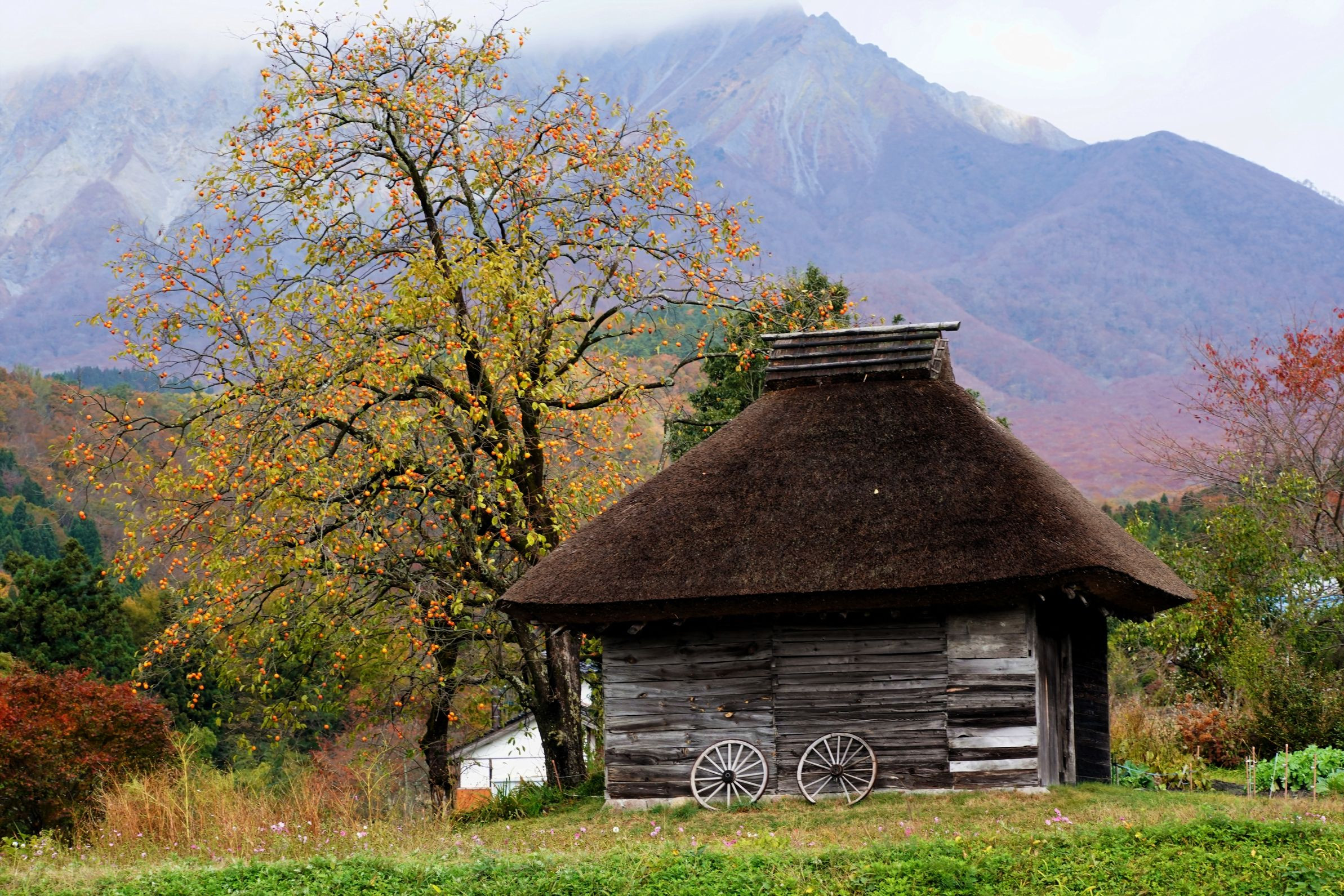 20211109 DSC03044 鳥取県御机の茅葺小屋大山を望む-