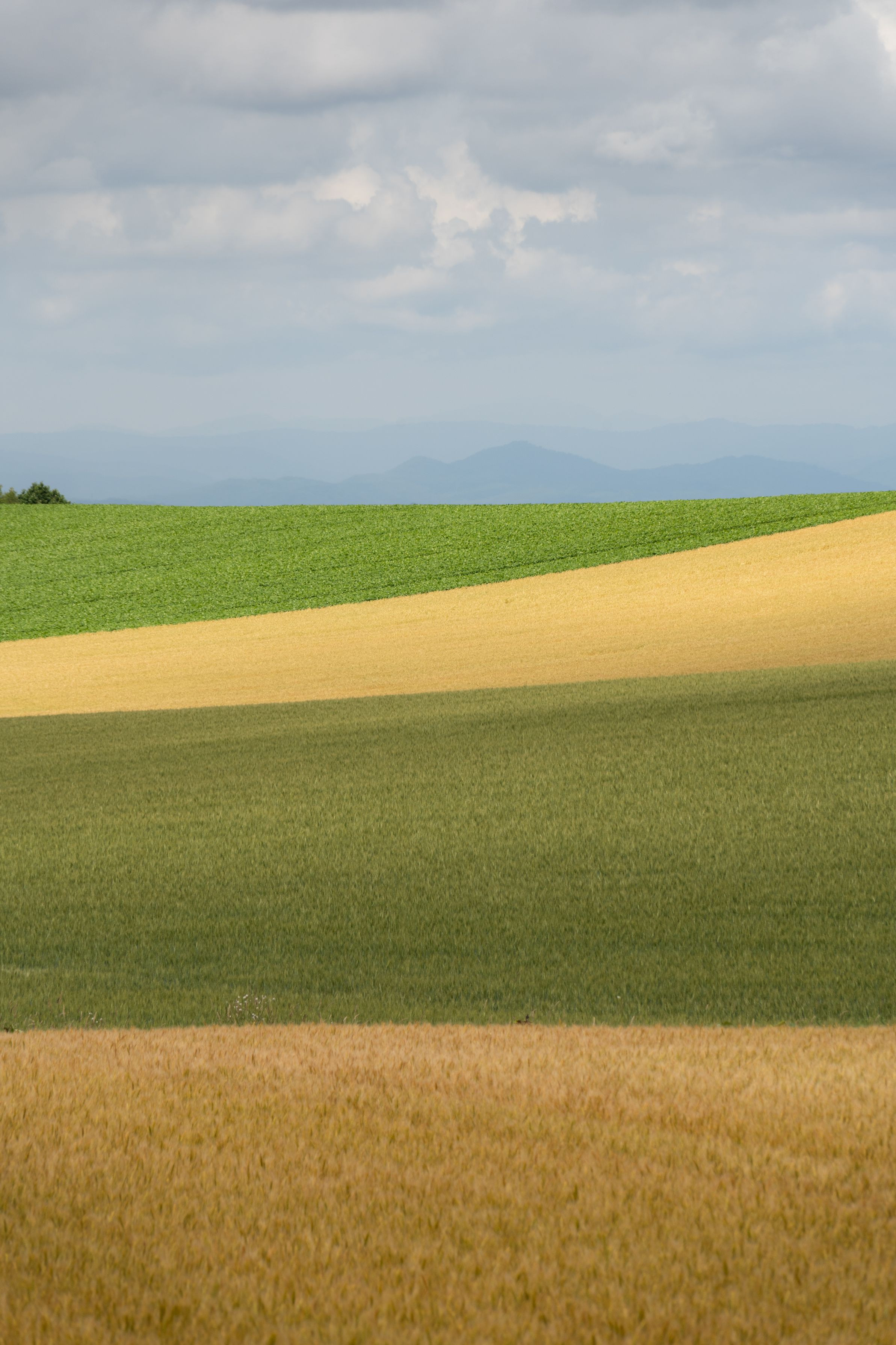 北海道美瑛町のパッチワーク 低い視点から見ると折り重なるように見えます\(^o^)/