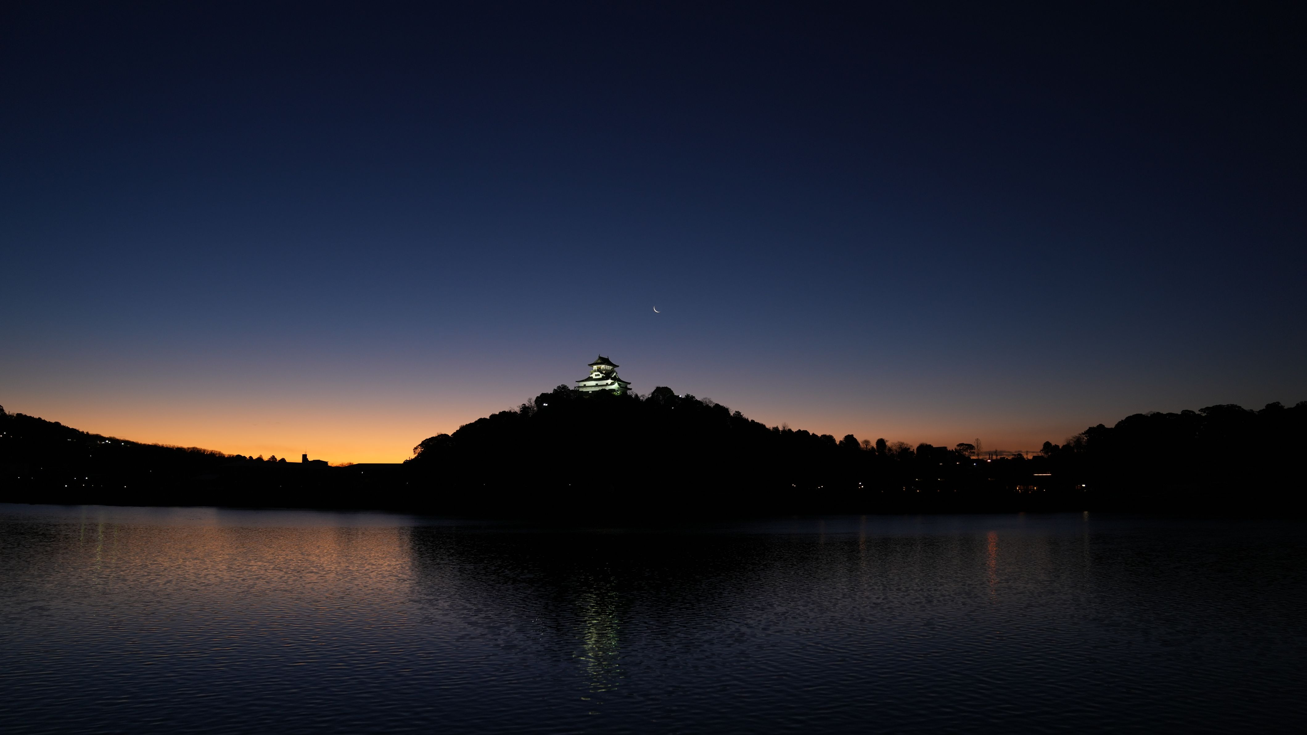 初日の出を撮りに行くと初月の出も撮ることができました。