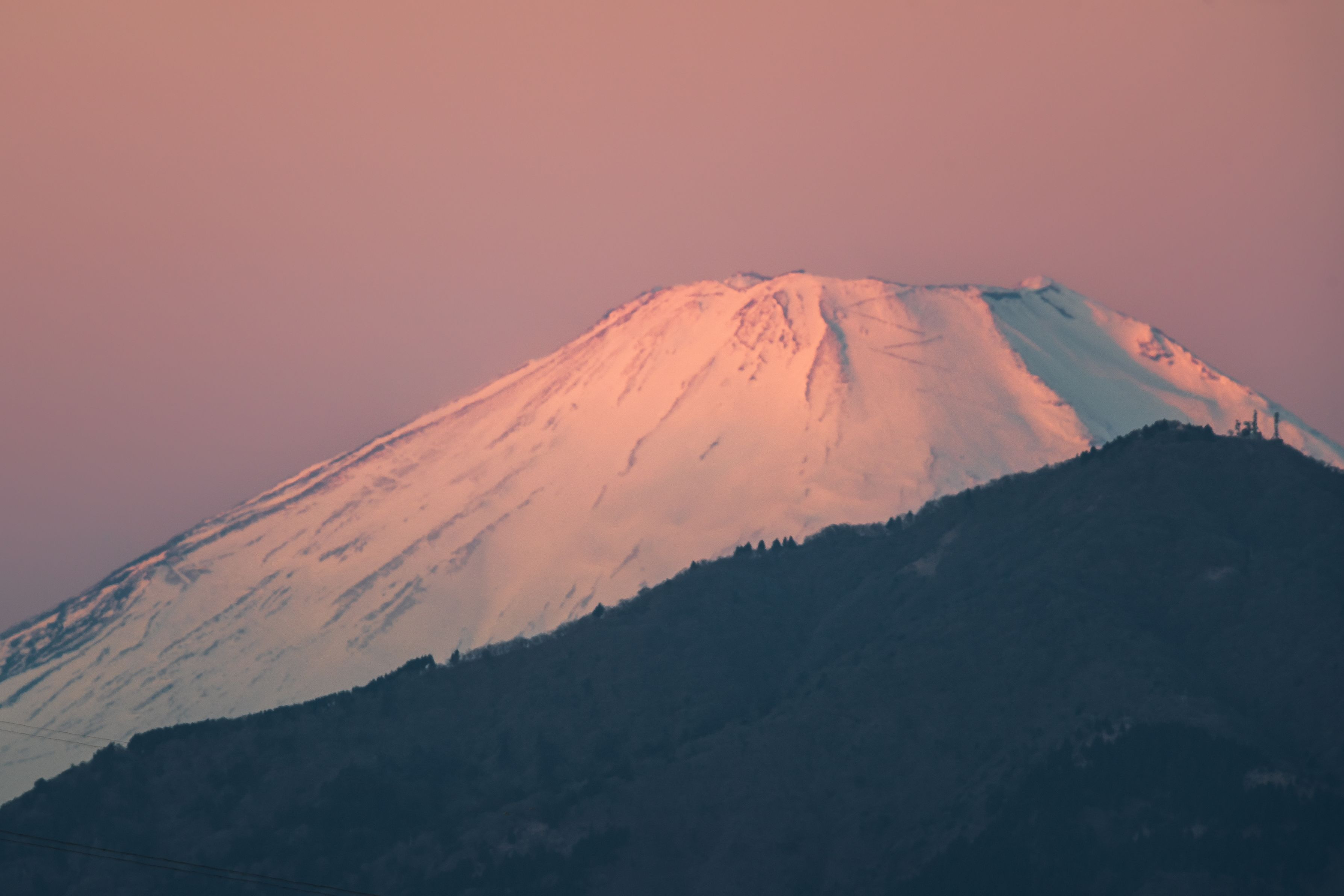 横浜の自宅から超望遠で撮影。氷点下とはいえ、大気が揺らぎまくりでした。 手前は、丹沢・大山です。 α7R III、PROMINAR 850mm F9.6、ISO200、1/20s、Trimming、Lightroom 本年もよろしくお願い致します。