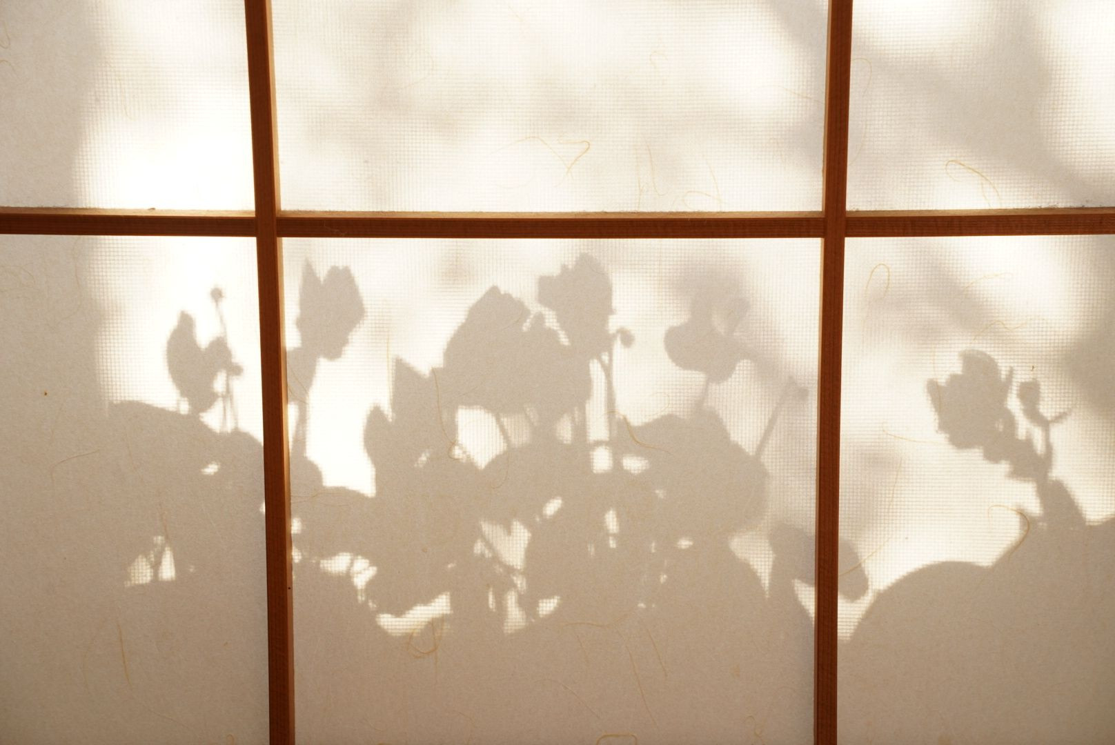 明るい光が障子越しに。 花の影が影絵のように写りました。