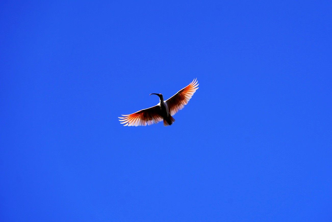快晴の青空に映える朱鷺色の翼、あっと言う間ですが堪能しました。