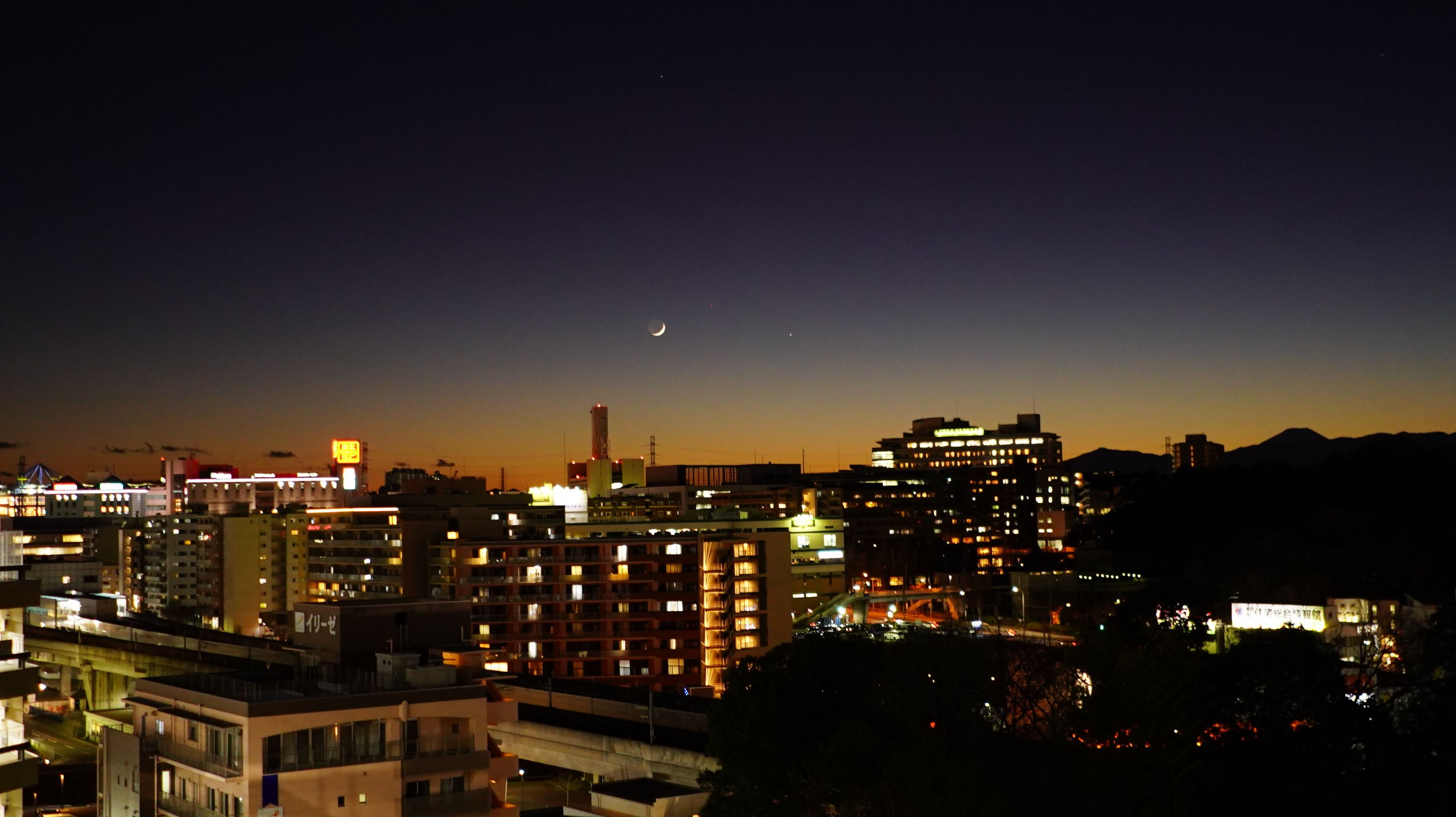 製品情報>My Sony>αcafe>街灯りと夕空に浮かぶ三日月(itocchi0615さん)