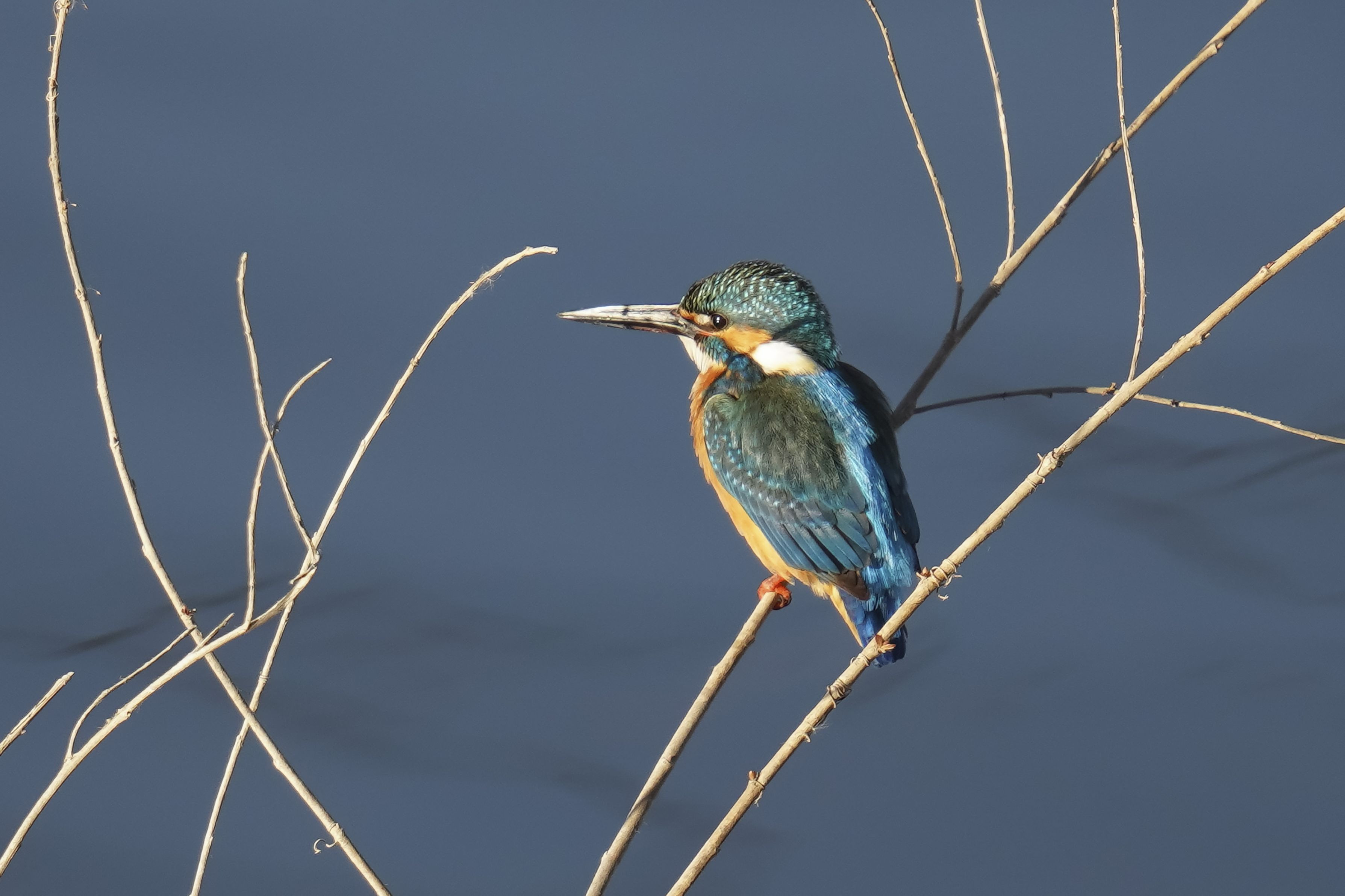 最近の撮影場所、川べりで撮影。細い枝に上手に止まっています。