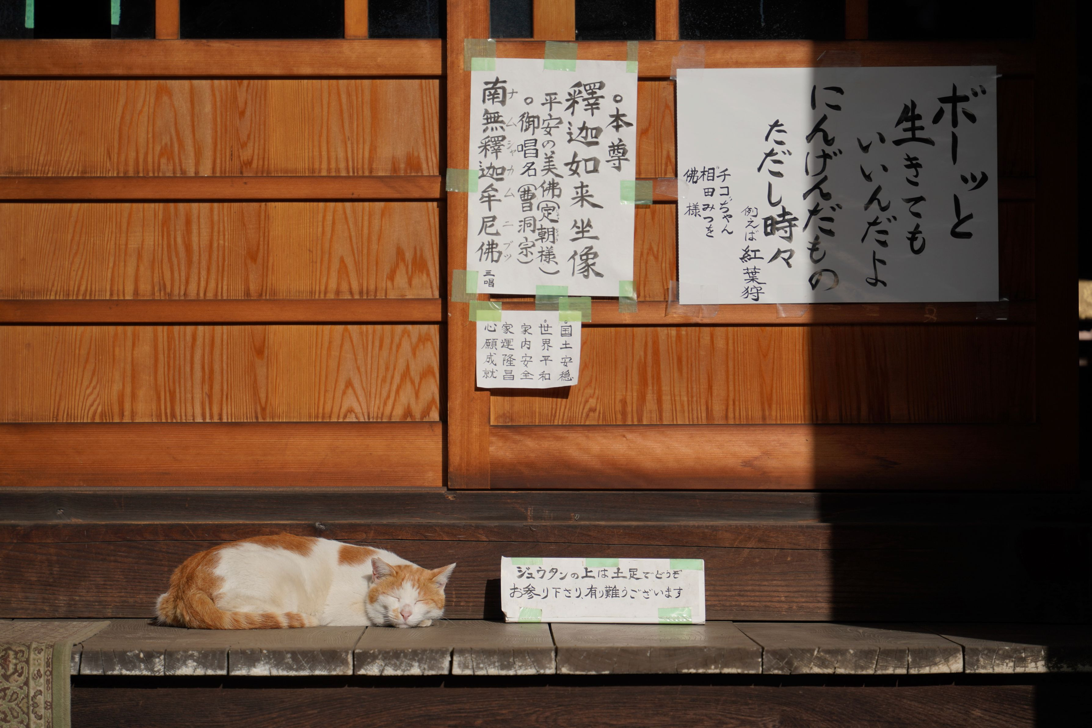 年末、近所のお寺さんに年内最後の撮影に。このありがたいお言葉の前で、お寺さんの猫が陽だまりの中、そのお言葉通りの生き方を実践していました。色々あった2021年でしたが、癒されました♪ 2022年も背負い込み過ぎずに、適度に頑張りましょう。