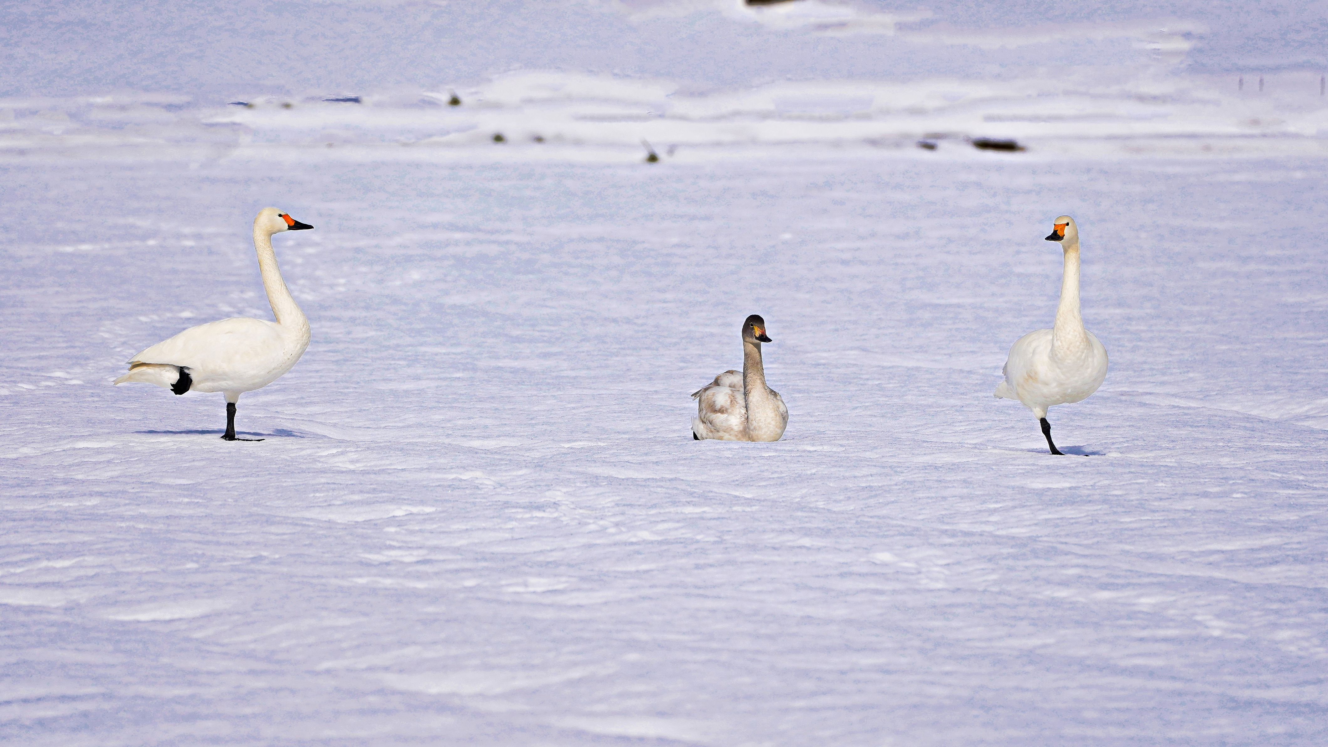 琵琶湖のコハクチョウです。田の落穂を食べに来るのですが、大雪で少々困っているのかな?