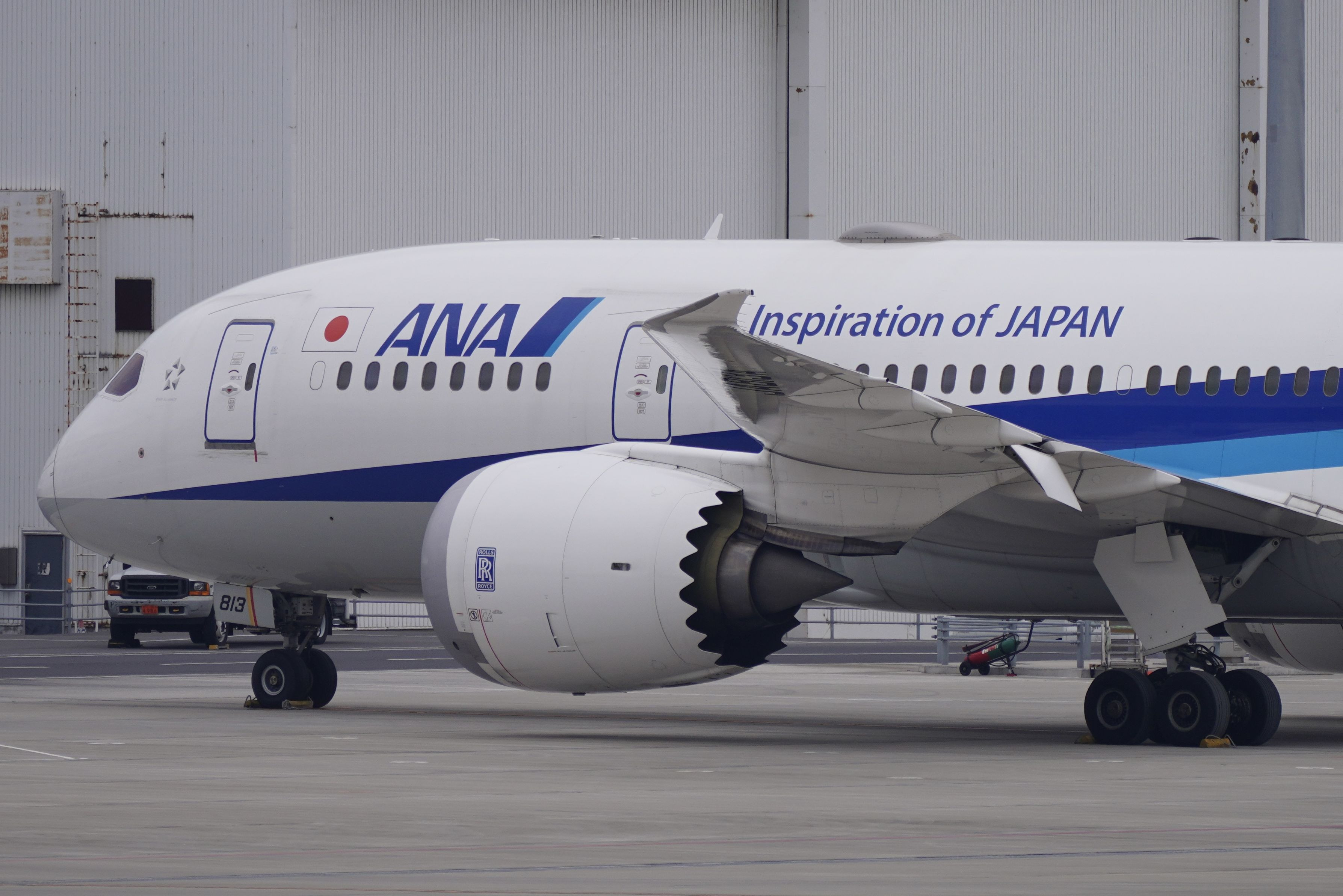 ギザギザのエンジン排気ノズルがカッコ良かったので撮りました。 羽田空港は風が強くて寒かった!